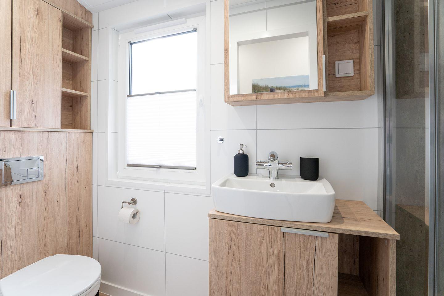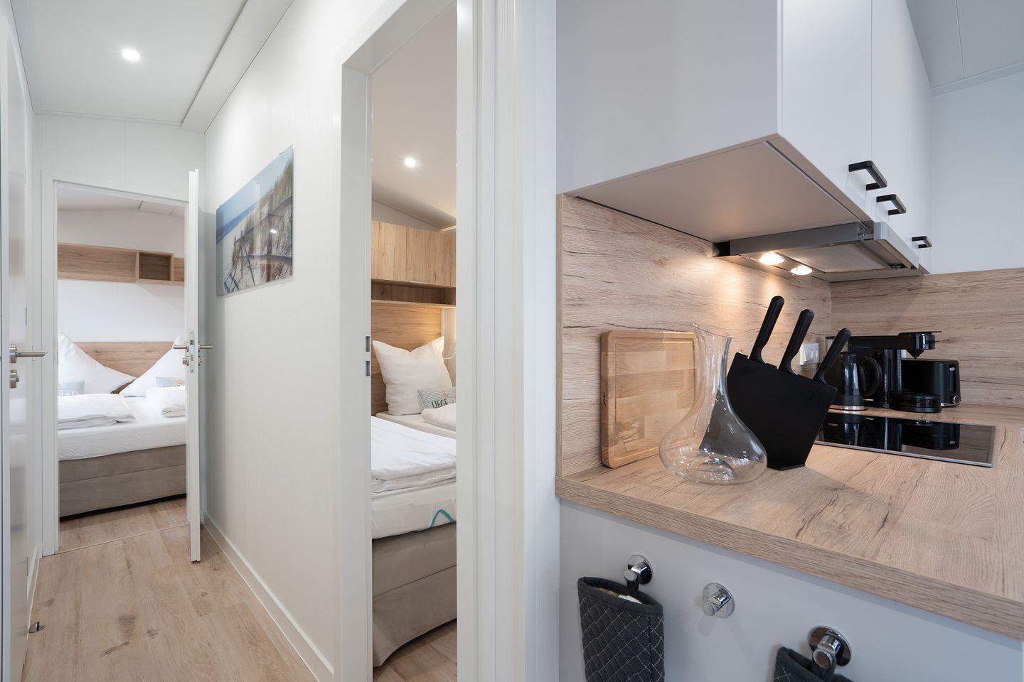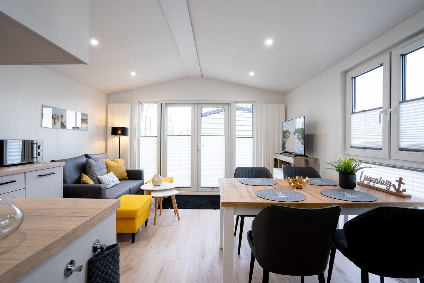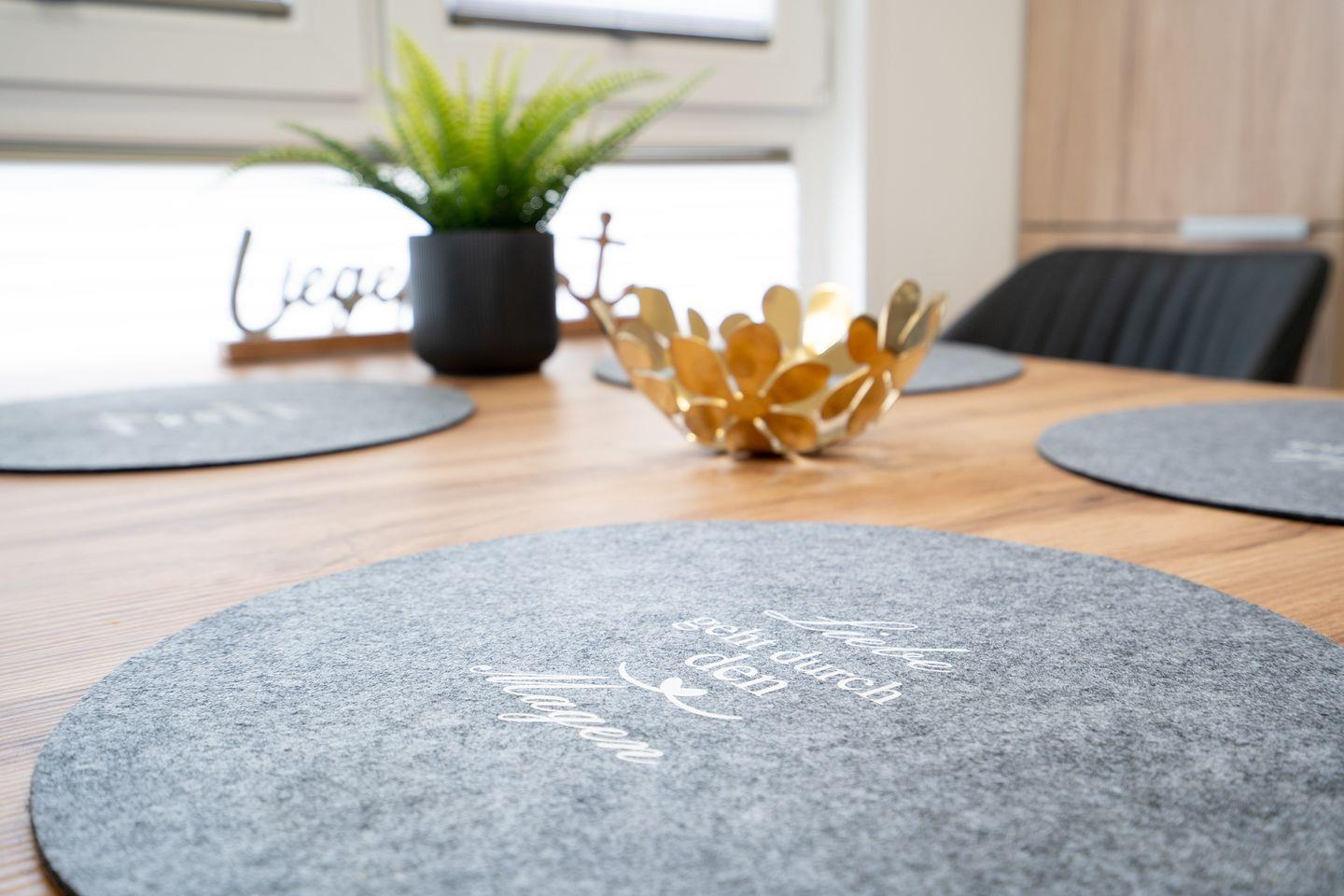 Im Inneren des Ferienhauses finden Sie eine gut ausgestattete Küche, in der Sie Ihre Lieblingsgerichte zubereiten können. Das Badezimmer ist modern und komfortabel ausgestattet. Das offene Wohn- und Esszimmer lädt zu gemeinsamen Mahlzeiten und gemütlichen Abenden ein. Das Ferienhaus "Liegeplatz" ist der ideale Ort, um familiäre Geborgenheit zu erleben.