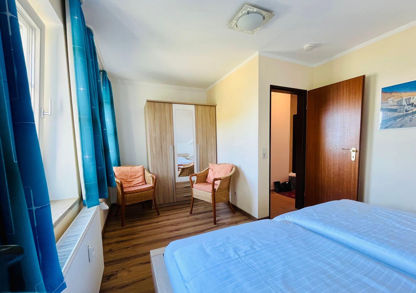 Das Schlafzimmer verfügt über ein komfortables Doppelbett und ausreichend Stauraum für Ihre persönlichen Sachen. Von Fenster des Schlafzimmers aus haben Sie einen direkten Meerblick. Im zweiten Schlafzimmer steht Ihnen eine Schlafcouch zur Verfügung. Ideal für Kinder.