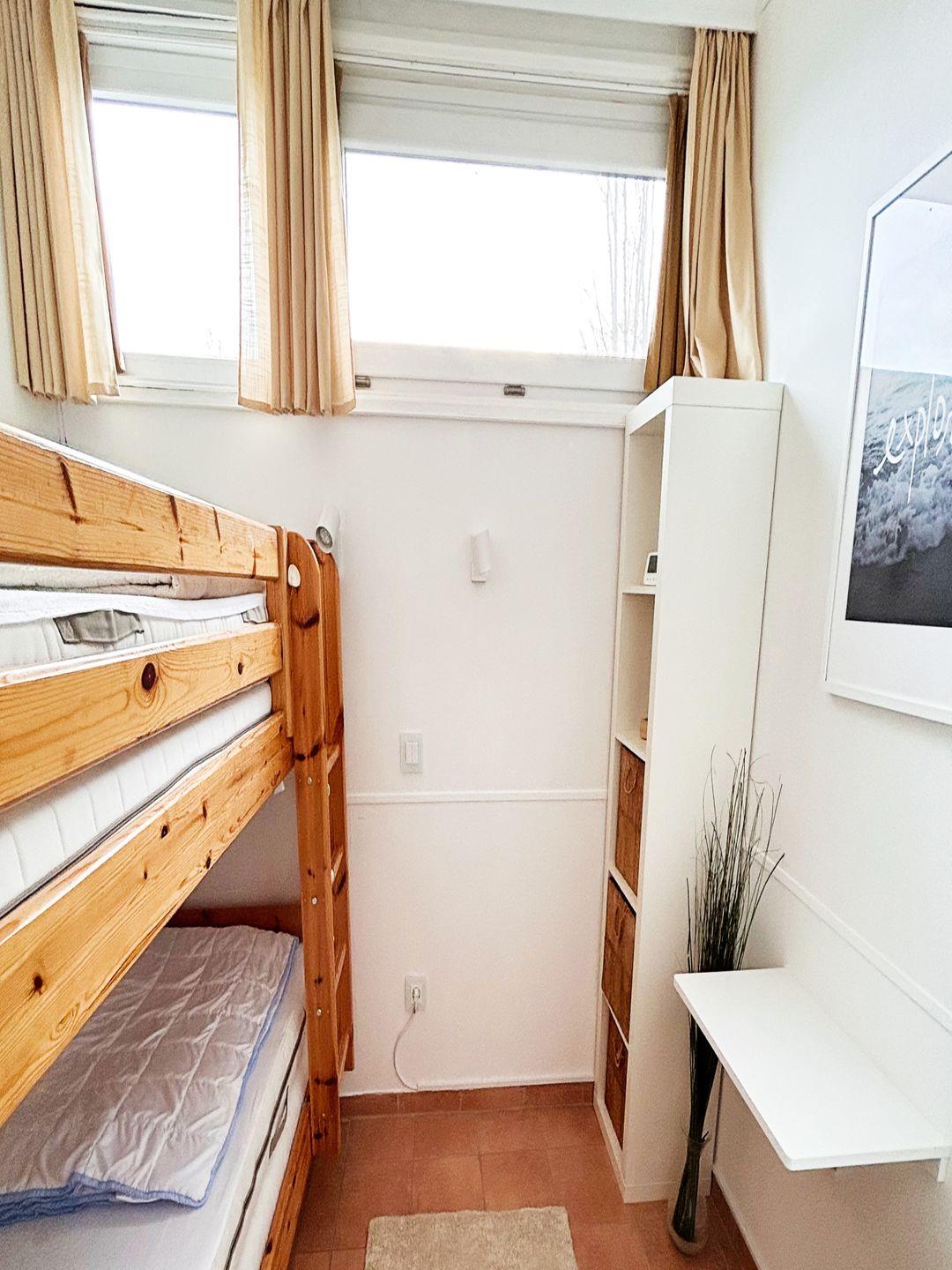 Das Haus verfügt über zwei gemütliche Schlafzimmer, perfekt für eine 4-köpfige Familie. Das Hauptschlafzimmer ist mit einem komfortablen 1,80 m Doppelbett mit separaten Matratzen ausgestattet, während das zweite Schlafzimmer über ein praktisches Etagenbett mit doppelten Matratzen verfügt. So kann aus den Doppelmatratzen auch schnell noch ein Bodenbett gebaut werden. Zusätzlich findet hier auch noch ein Babybett Platz oder es kann mit weniges Handgriffen zu einem praktischen Arbeitsplatz umgebaut werden. WLAN steht im ganzen Haus sowie im Garten zur Verfügung.