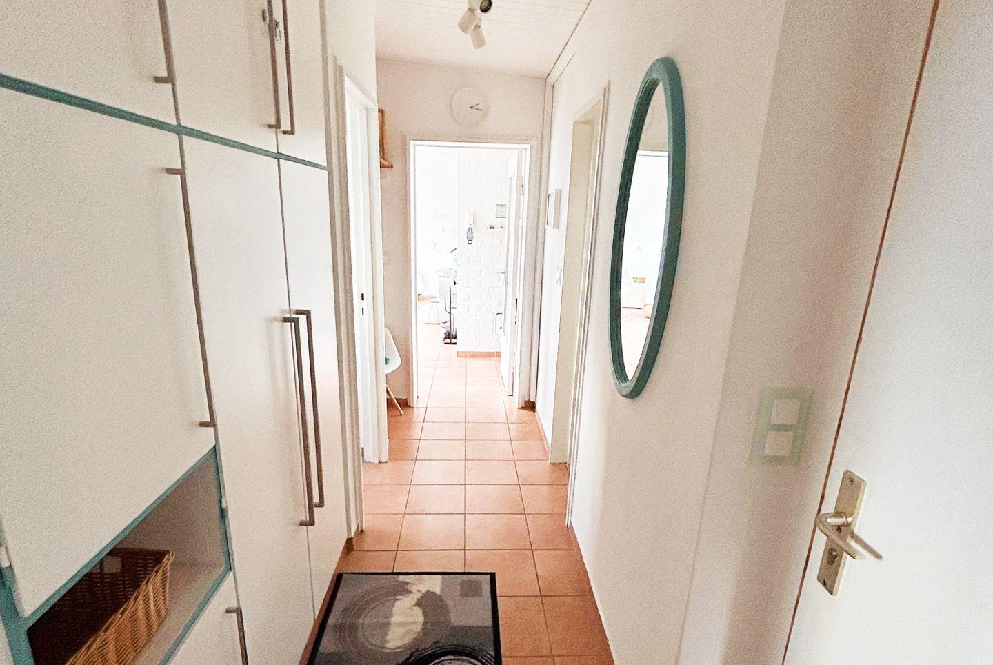 Der im Flur versteckte Einbauschrank, ein zusätzlicher HWR sowie ein separater Schrank und Spiegelschrank im Bad bieten jeden Menge Stauraum.