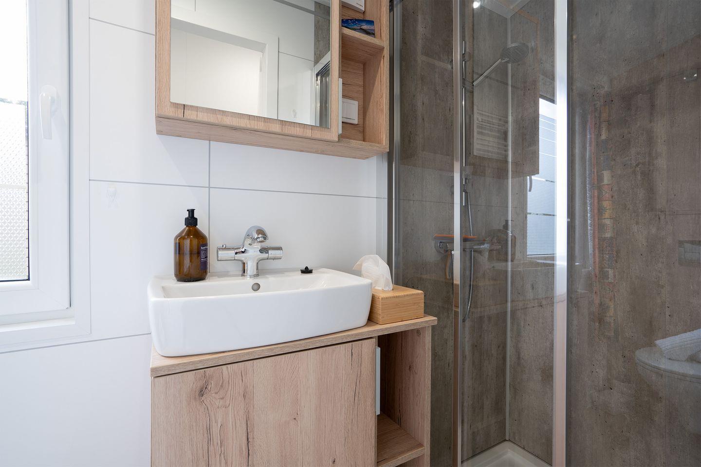 Das Ostseecamp Ferienhaus Seeadler (96) in Scharbeutz bietet auf 40?m² Platz für bis zu fünf Personen und überzeugt mit zwei Schlafzimmern, moderner offener Küche, bodengleicher Dusche und WLAN. Genießen Sie entspannte Stunden auf der eigenen Terrasse mit Grill und profitieren Sie von einem Privatparkplatz am Haus. Haustiere sind willkommen.