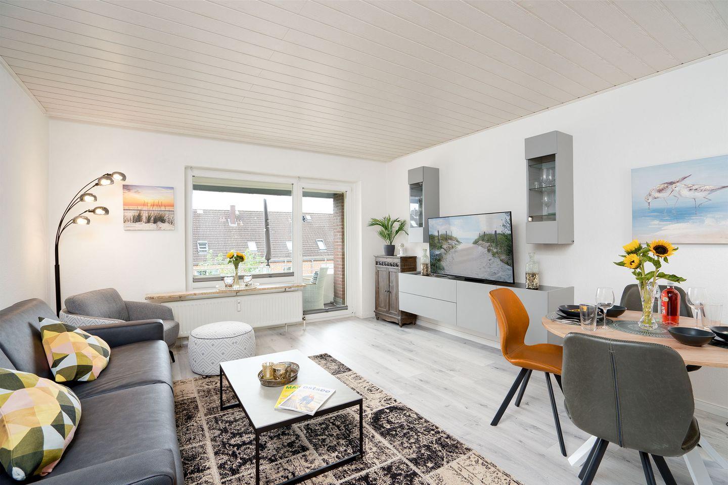 Gemütliche Ferienwohnung "Kleiner Knurrhahn" in Scharbeutz, nur 300 Meter vom Strand entfernt, mit Balkon und WLAN.