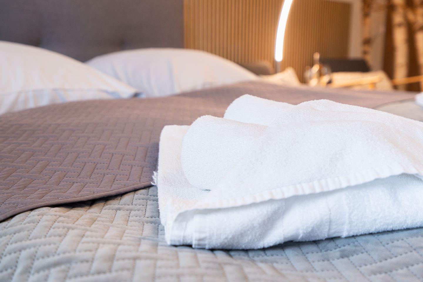 Ankommen und wohlfühlen – die Betten sind bei Eurer Anreise bereits frisch bezogen und Handtücher liegen bereit. Das Wäschepaket umfasst pro Person zwei Handtücher und ein Duschtuch sowie einen Duschvorleger und ein Geschirrhandtuch pro Wohnung. Das Wäschepaket ist automatisch im Buchungspreis enthalten.