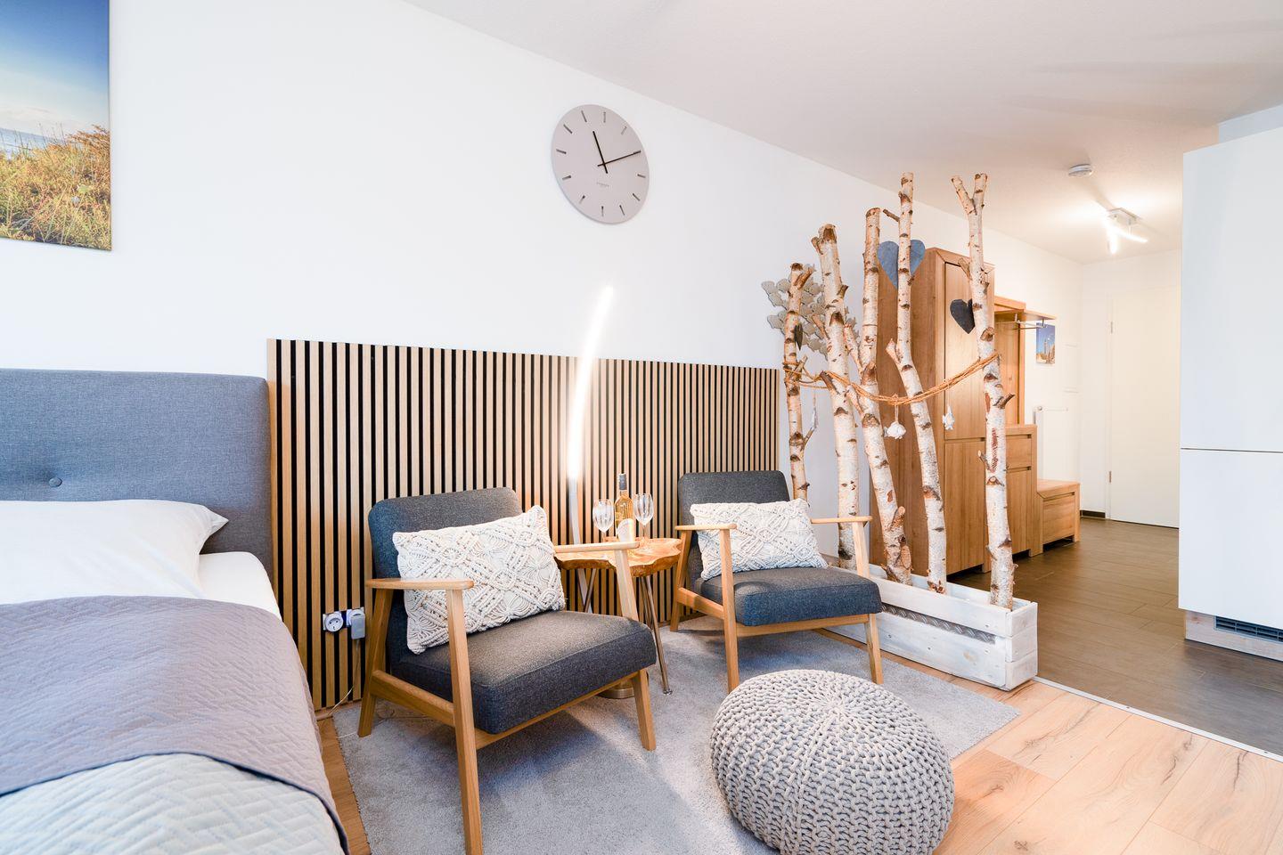 Modernes Appartement "Meerzeit" in Scharbeutz, nur 800 m vom Strand entfernt, perfekt für entspannte Ostseeurlaube zu zweit.