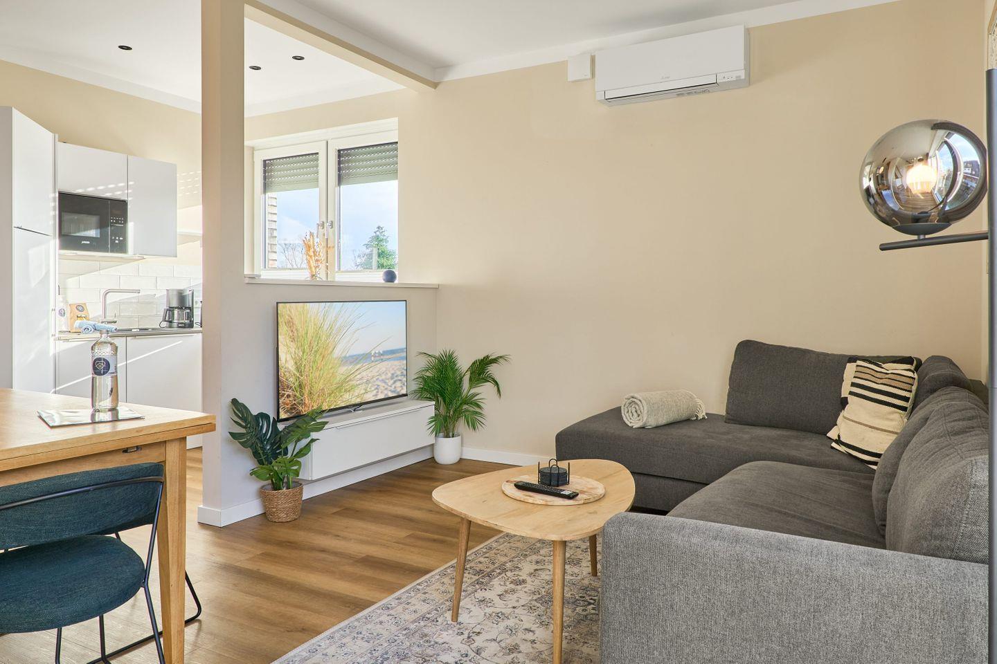 Die Ferienwohnung Sun Deck in Scharbeutz bietet auf 100 qm viel Platz und eine exklusive Ausstattung für bis zu 8 Personen – ideal für Familien und Freundesgruppen, die Wert auf Komfort und Erholung legen. Der großzügige geschmackvoll eingerichtete Wohnbereich mit einer großen, bequemen Schlafcouch (140x200 cm) lädt zum Entspannen ein und lässt sich leicht in ein zusätzliches Bett verwandeln. Ein 50-Zoll-Smart-TV sorgt für Unterhaltung. Der angrenzende Essbereich mit einem großen Tisch bietet viel Platz für gemeinsame Mahlzeiten und gemütliche Abende.