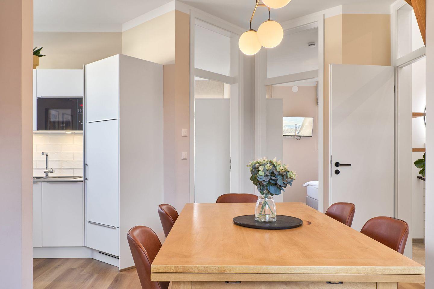 Ein privater Abstellraum sorgt für zusätzlichen Komfort: Mit Waschtrockner, Dyson-Akkustaubsauger, Wäscheständer, Bügeleisen und Bügelbrett ist für alle praktischen Notwendigkeiten gesorgt. Zur Wohnung gehört auch ein Parkplatz, ein Fahrradschuppen sowie WLAN, und eine Ladestation für Elektroautos steht auf Wunsch zur Verfügung. Familien profitieren von einem Babybett und Hochstuhl, die auf Anfrage bereitgestellt werden.