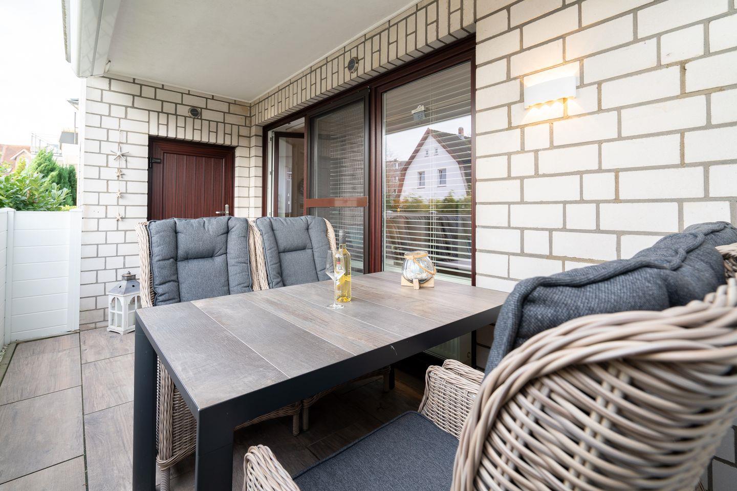Charmante Ferienwohnung Pier One in Scharbeutz, 200 m vom Strand, mit moderner Ausstattung und überdachter Terrasse für erholsame Urlaubsmomente.