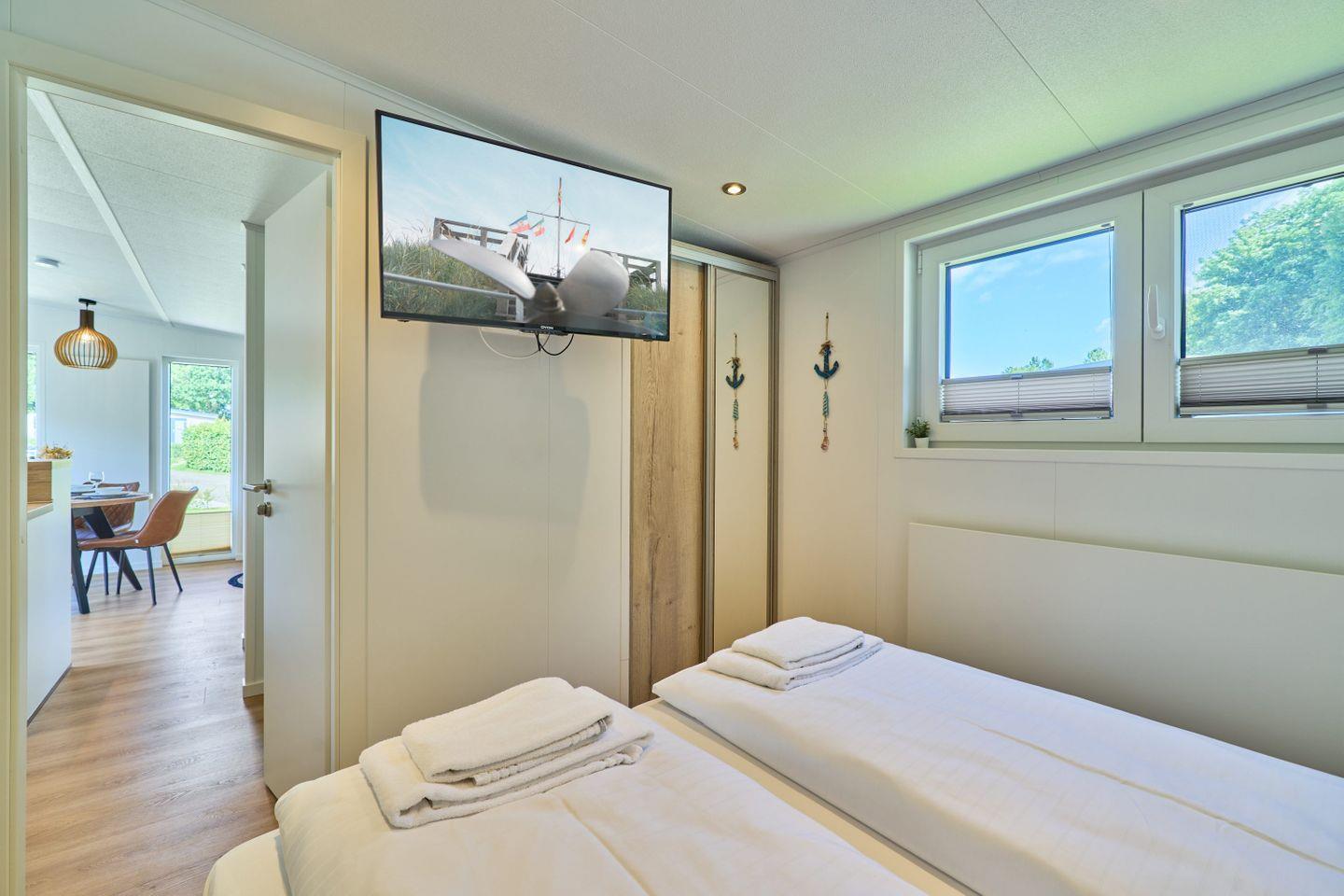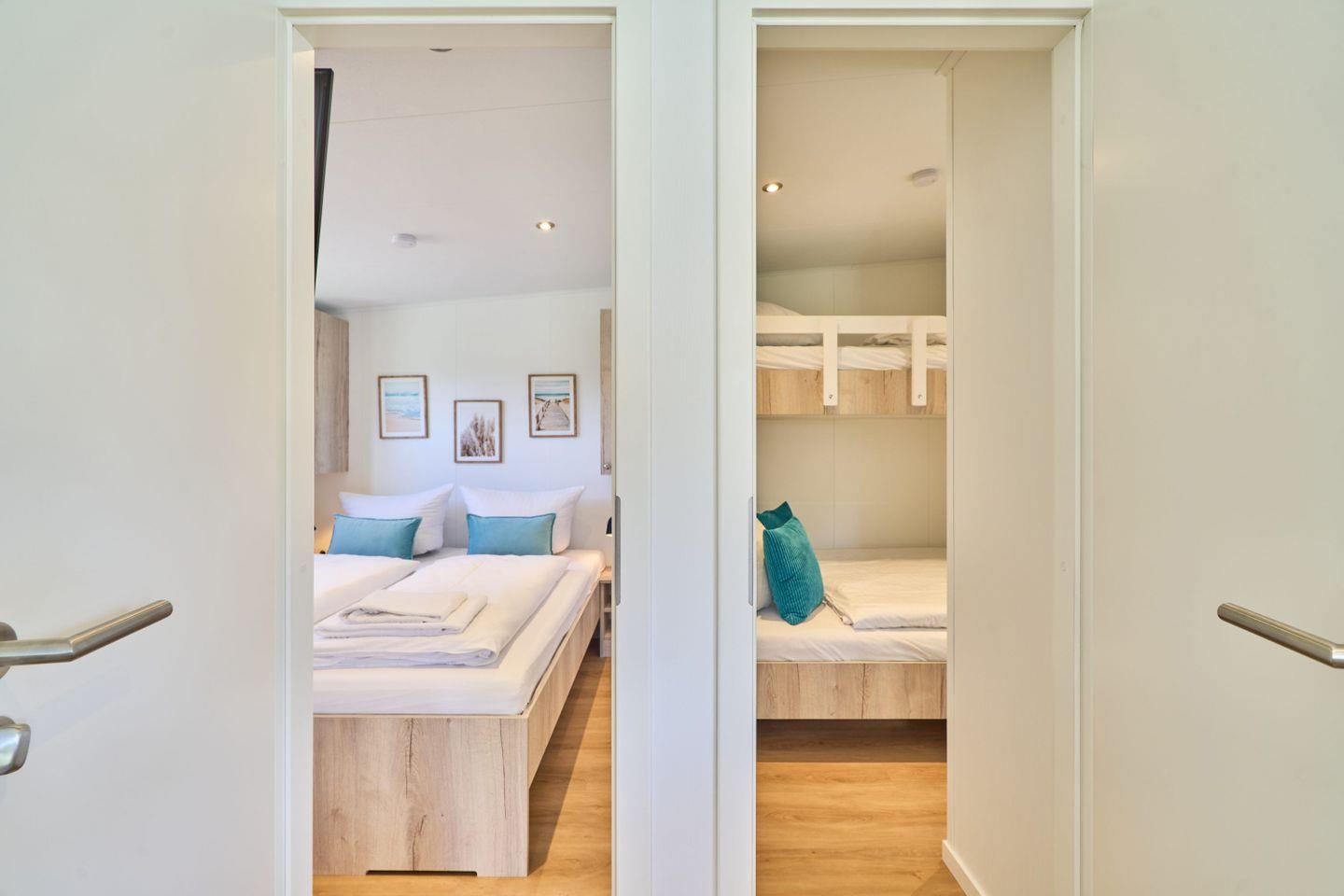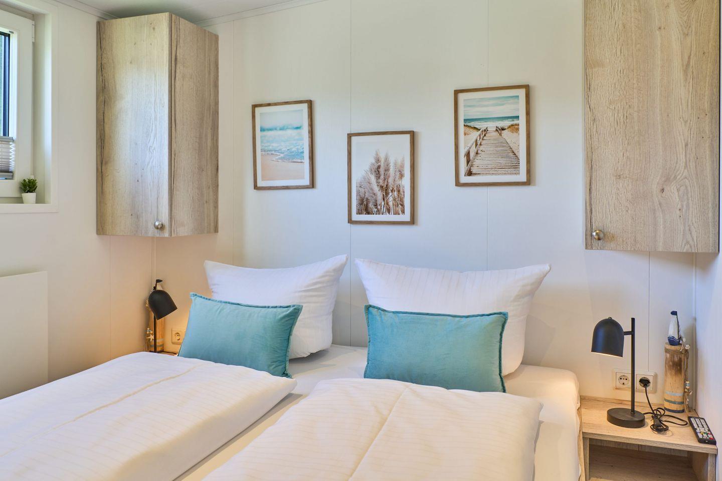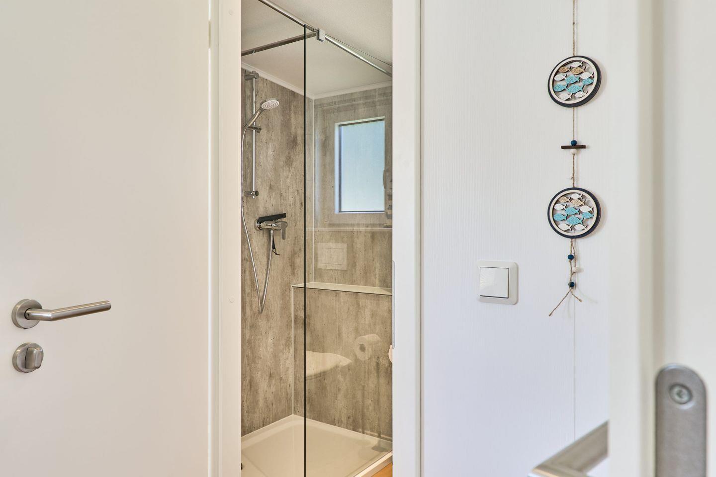 Zur optimalen Erholung stehen Ihnen zwei Schlafzimmer zur Verfügung, die mit Vinylboden ausgestattet sind und einen ruhigen Rückzugsort bieten. Das Ferienhaus beherbergt zudem ein modernes Badezimmer mit bodengleicher Dusche, WC und einem Haartrockner. Des Weiteren sind Annehmlichkeiten wie WLAN, eine Heizung sowie Rauchmelder vorhanden, um Ihnen während Ihres Aufenthalts den größtmöglichen Komfort und Sicherheit zu gewährleisten.