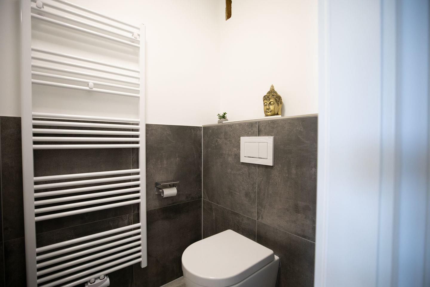 Jede der beiden Wohnungen verfügt über einen eigenen Balkon mit Südausrichtung, sodass Sie ganztägig die Sonne genießen können. Die Wohnungen bieten insgesamt drei Schlafzimmer: ein Elternschlafzimmer mit Boxspringbett (200x200 cm), ein weiteres Schlafzimmer mit Etagenbett (auch für Erwachsene geeignet) und der Möglichkeit, ein Babyreisebett aufzustellen, sowie ein drittes Schlafzimmer mit Elternbett (180x200 cm) und offener Duschnische. Ergänzt wird das Angebot durch ein modernes Badezimmer sowie ein separates WC mit großem Waschbecken.