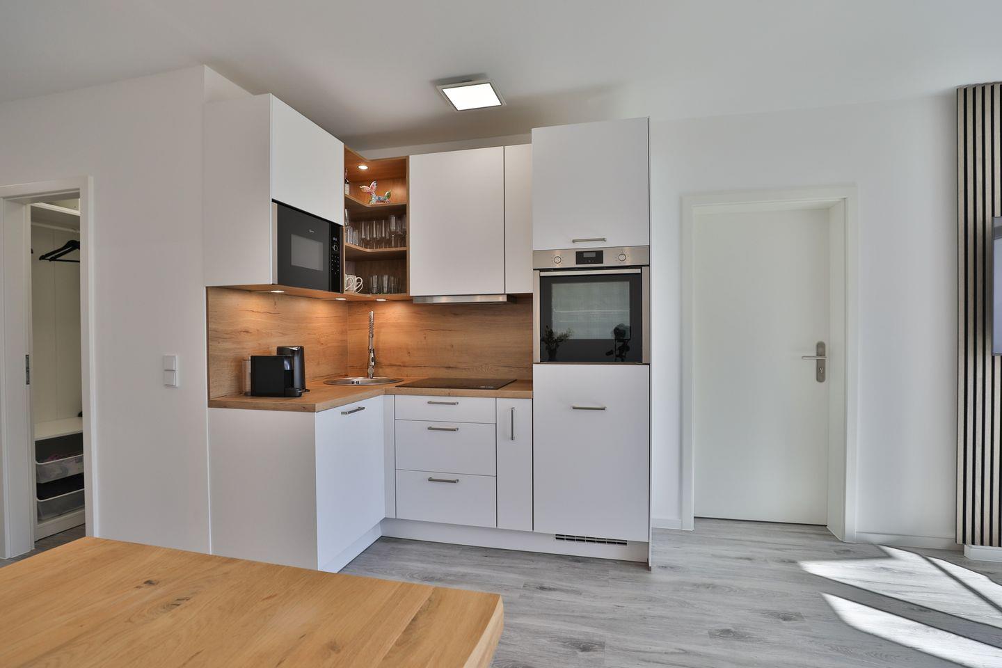 Die großzügigen Wohn-Essbereiche mit offener Küche laden zu gemeinsamen Mahlzeiten und geselligen Stunden ein. Zwei große Schlafsofas bieten zusätzliche Schlafplätze, sodass sich die Wohnungen flexibel für verschiedene Gruppengrößen nutzen lassen. Das clevere Raumkonzept erlaubt es Eltern mit Kindern, komfortabel und ruhig zu schlafen, ohne sich gegenseitig zu stören.