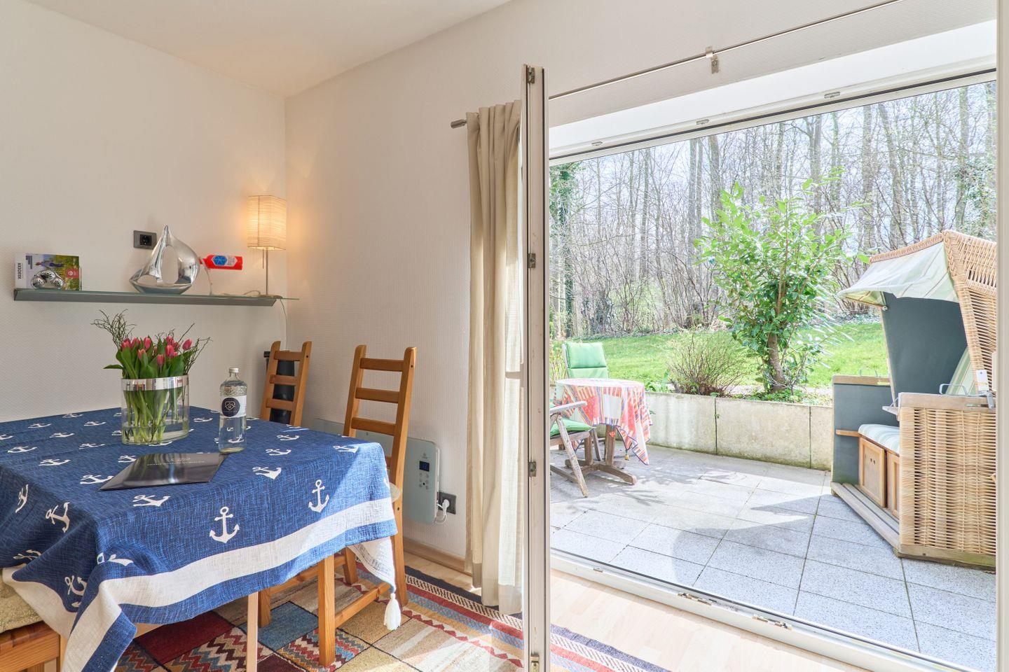 Ruhige 2-Zimmer-Wohnung mit Sonnenterrasse und Blick auf Wiesen und Wald in Scharbeutz.