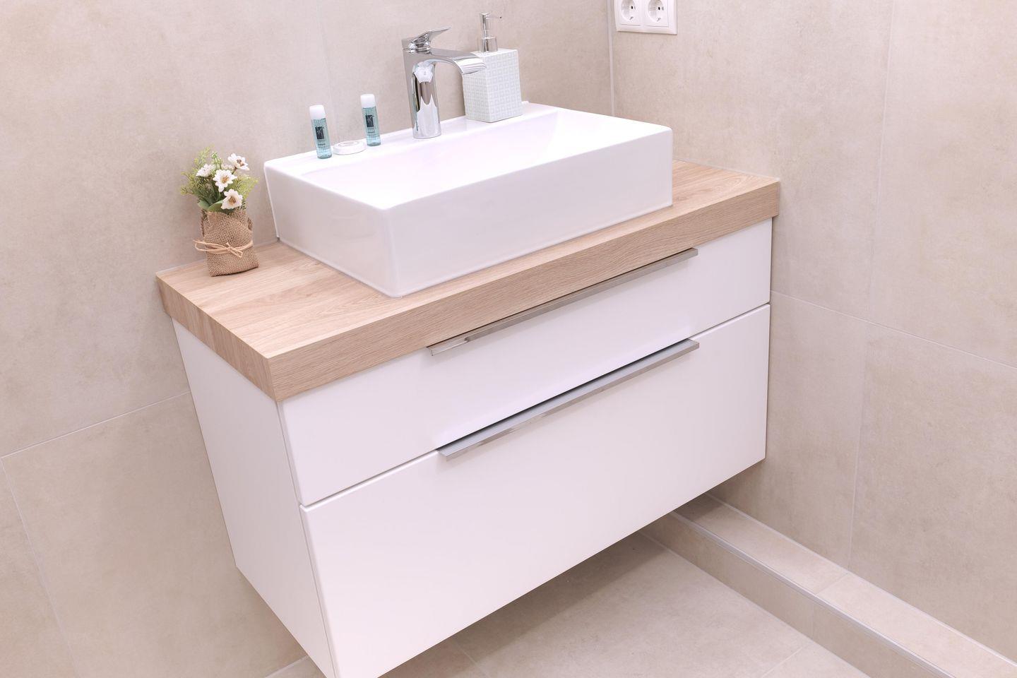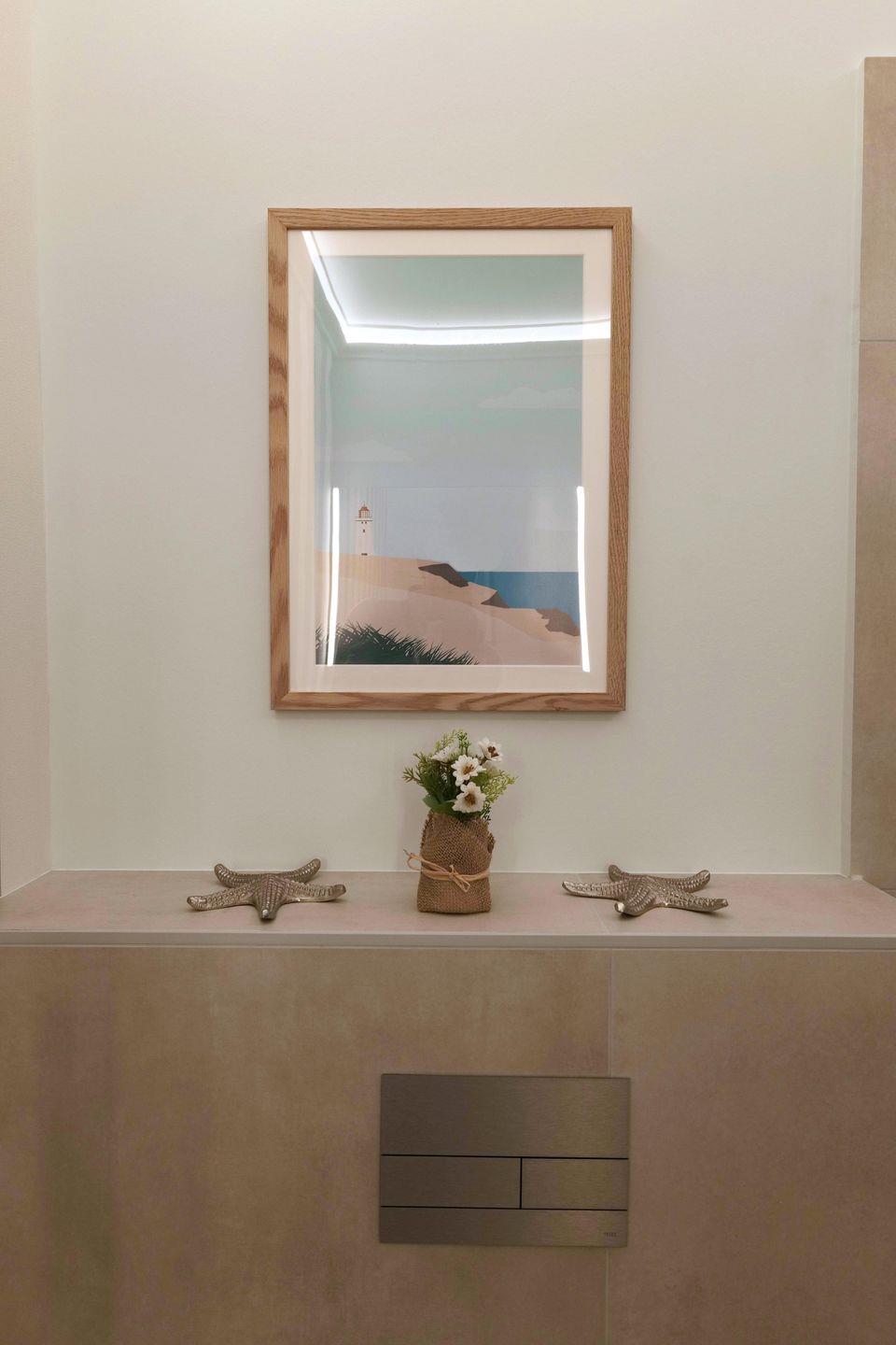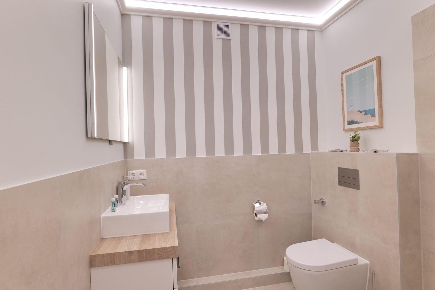 Im hellen Bad erwartet Sie eine bodengleiche Dusche und ein WC. Bettwäsche und Handtücher sind inklusive.