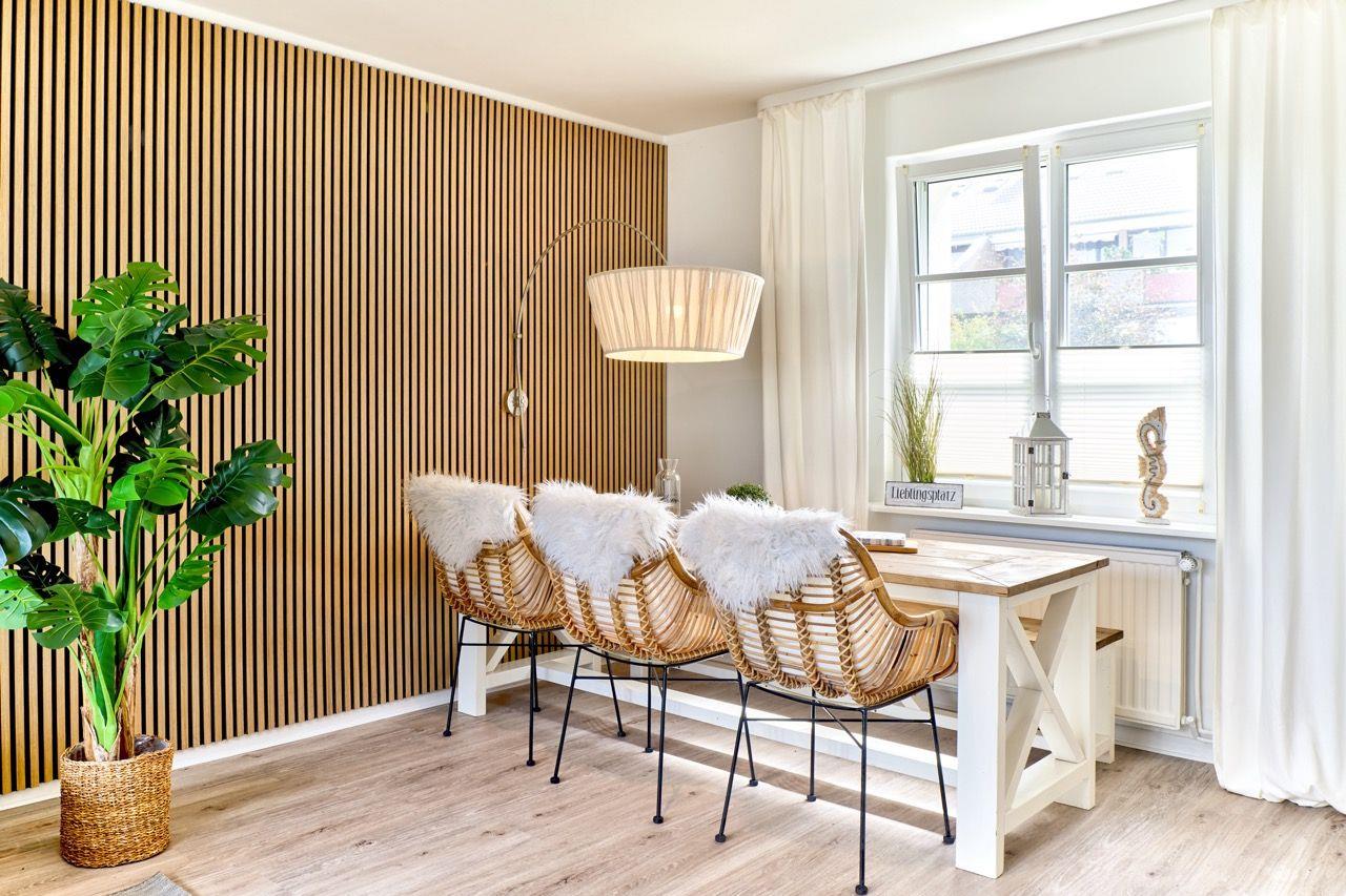 Schon beim Betreten des Hauses empfängt Sie ein lichtdurchfluteter, offen gestalteter Wohn- und Essbereich, der mit seiner warmen Atmosphäre sofort Wohlgefühl vermittelt. Hier trifft stilvolles Design auf Funktionalität und schafft ein Ambiente, das gleichermaßen zum Entspannen wie zum geselligen Zusammensein einlädt. Die moderne, vollständig ausgestattete Küche lässt keine Wünsche offen und bietet alles, was Sie für entspannte Kochabende oder ein ausgiebiges Frühstück benötigen. Ein freundliches Tageslichtbad mit Dusche ergänzt das Angebot im Erdgeschoss.