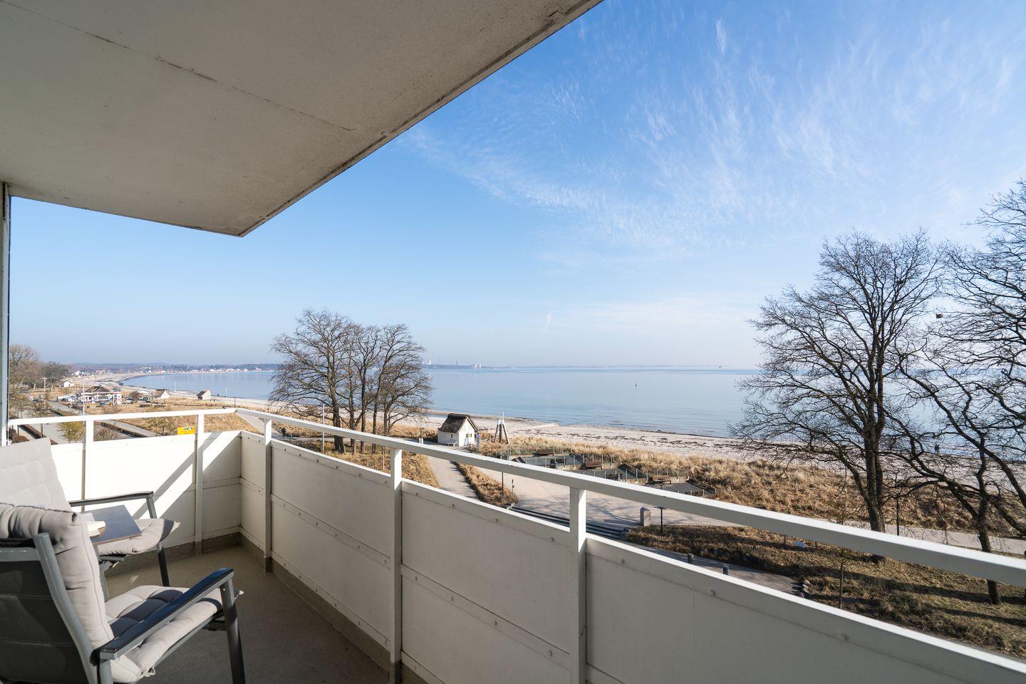 Ein echtes Highlight ist der geräumige, überdachte Balkon mit Sitzgelegenheiten, der sich über die gesamte Fensterfront erstreckt und Euch einen traumhaften Blick auf die Ostsee bietet. Hier könnt Ihr die frische Meeresluft genießen und bei fast jedem Wetter entspannte Stunden verbringen.