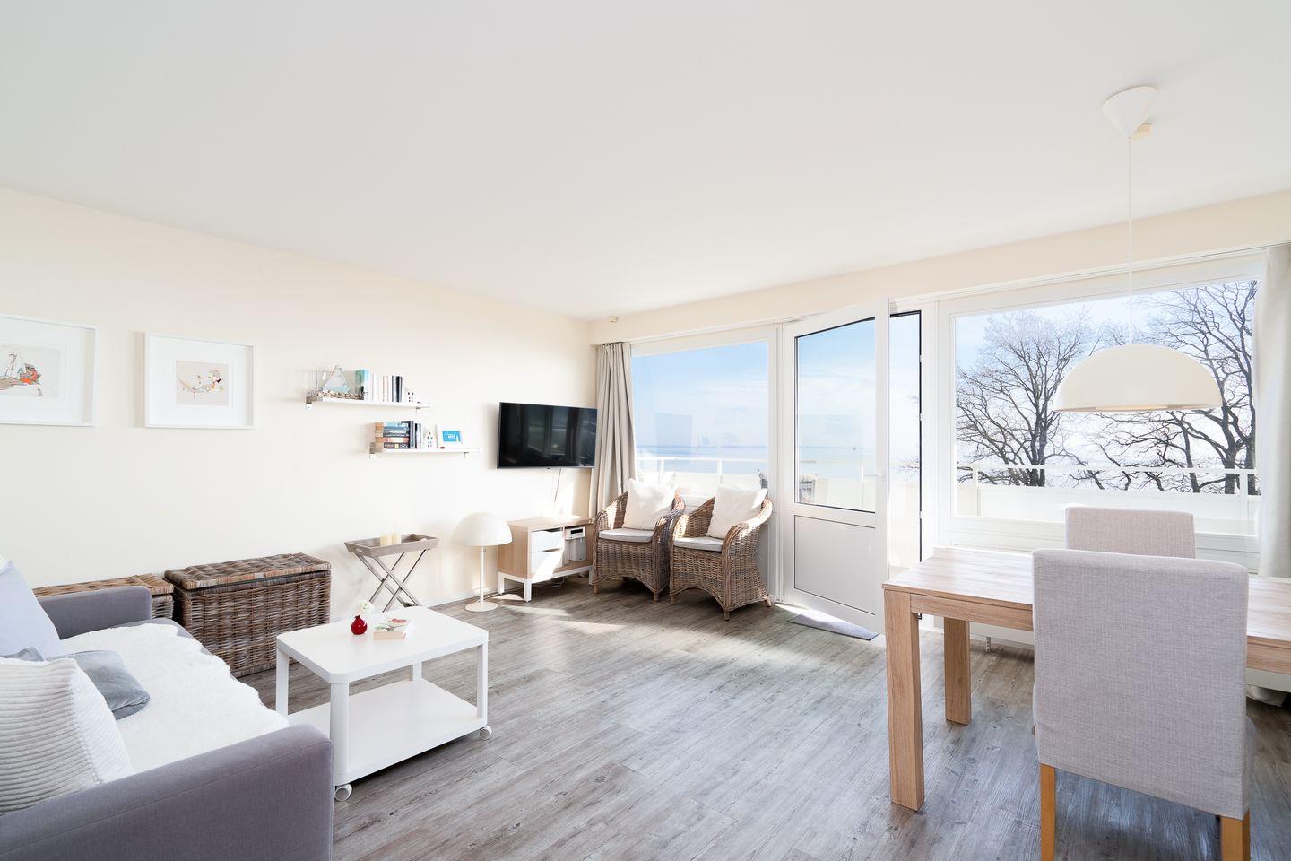 Modernes Apartment in Scharbeutz mit direktem Meerblick und Balkon in erster Strandreihe.