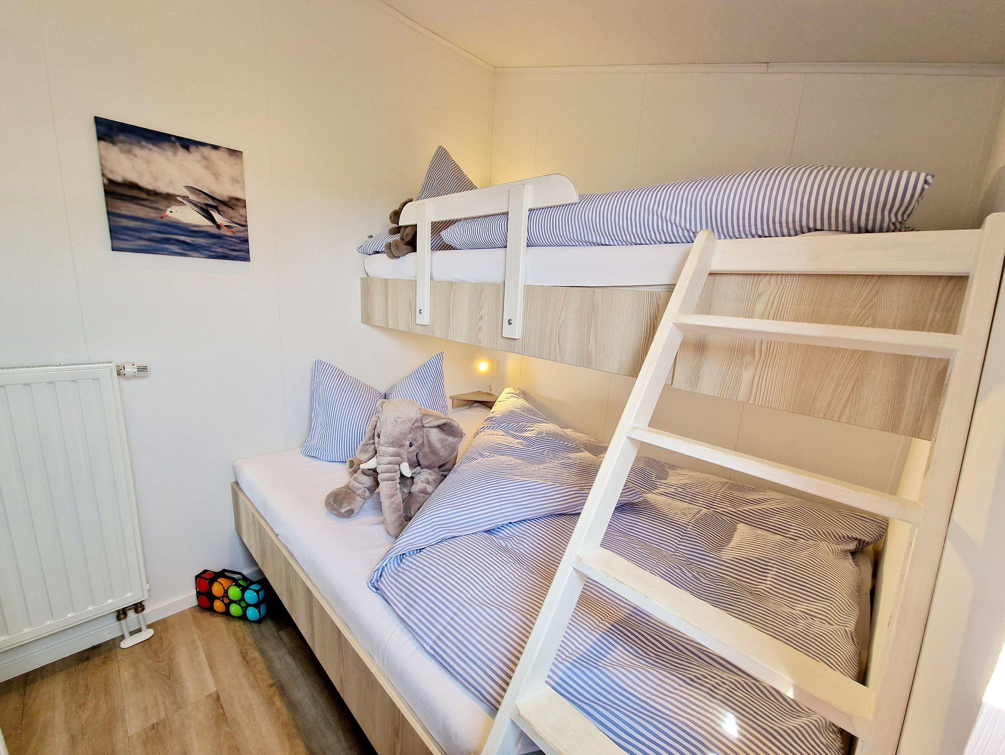 - Schlafzimmer 2: 1 Etagenbett für 3 Pers. (unteres Bett 140x200 cm, oberes ca. 80x200 cm)