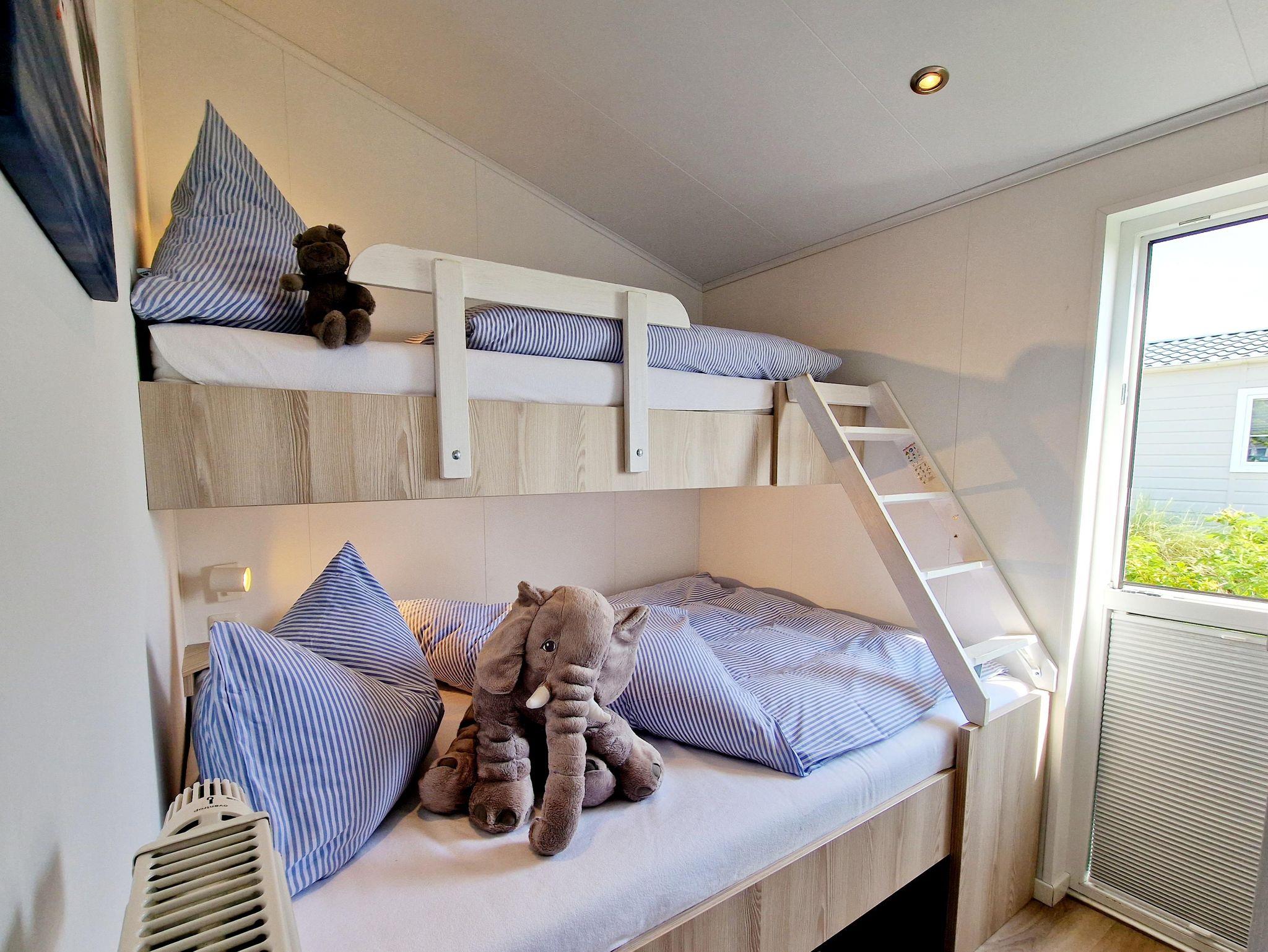- Schlafzimmer 2: 1 Etagenbett für 3 Pers. (unteres Bett 140x200 cm, oberes ca. 80x200 cm)