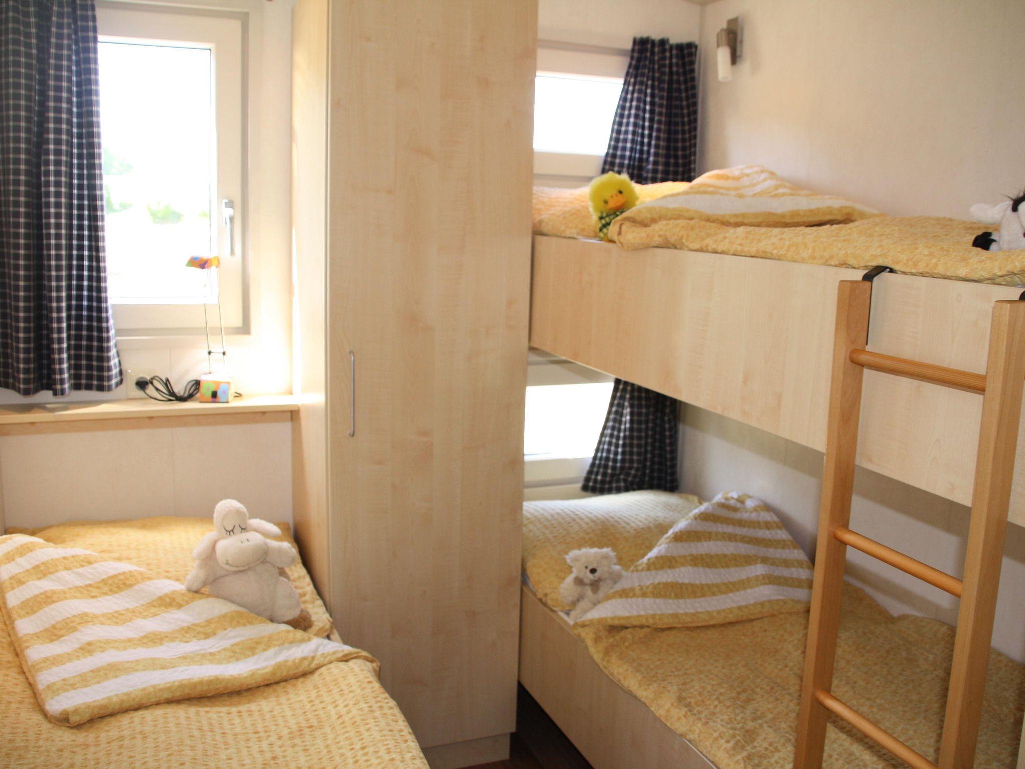 - Schlafzimmer 2: 1 Etagenbett (unten und oben je ca. 80x200 cm, 1 Einzelbett ca. 80x200 cm)