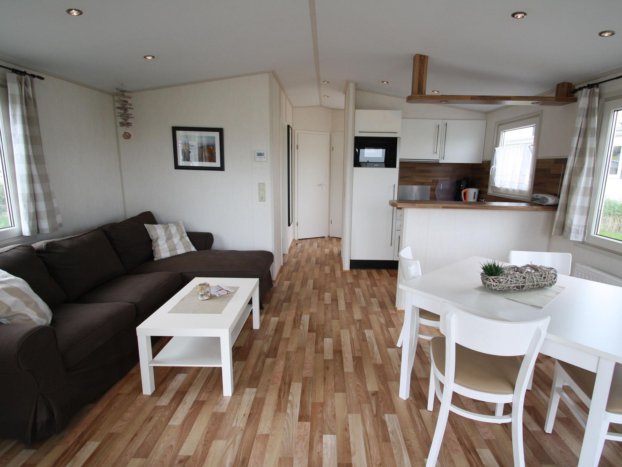 - Wohnzimmer: Esstisch, Sofaecke, TV Küche: großer Kühlschrank mit Gefrierfach, Kombi-Mikrowelle, Geschirrspülmaschine, Toaster, Wasserkocher, Filterkaffeemaschine, Ess-/Kochgeschirr