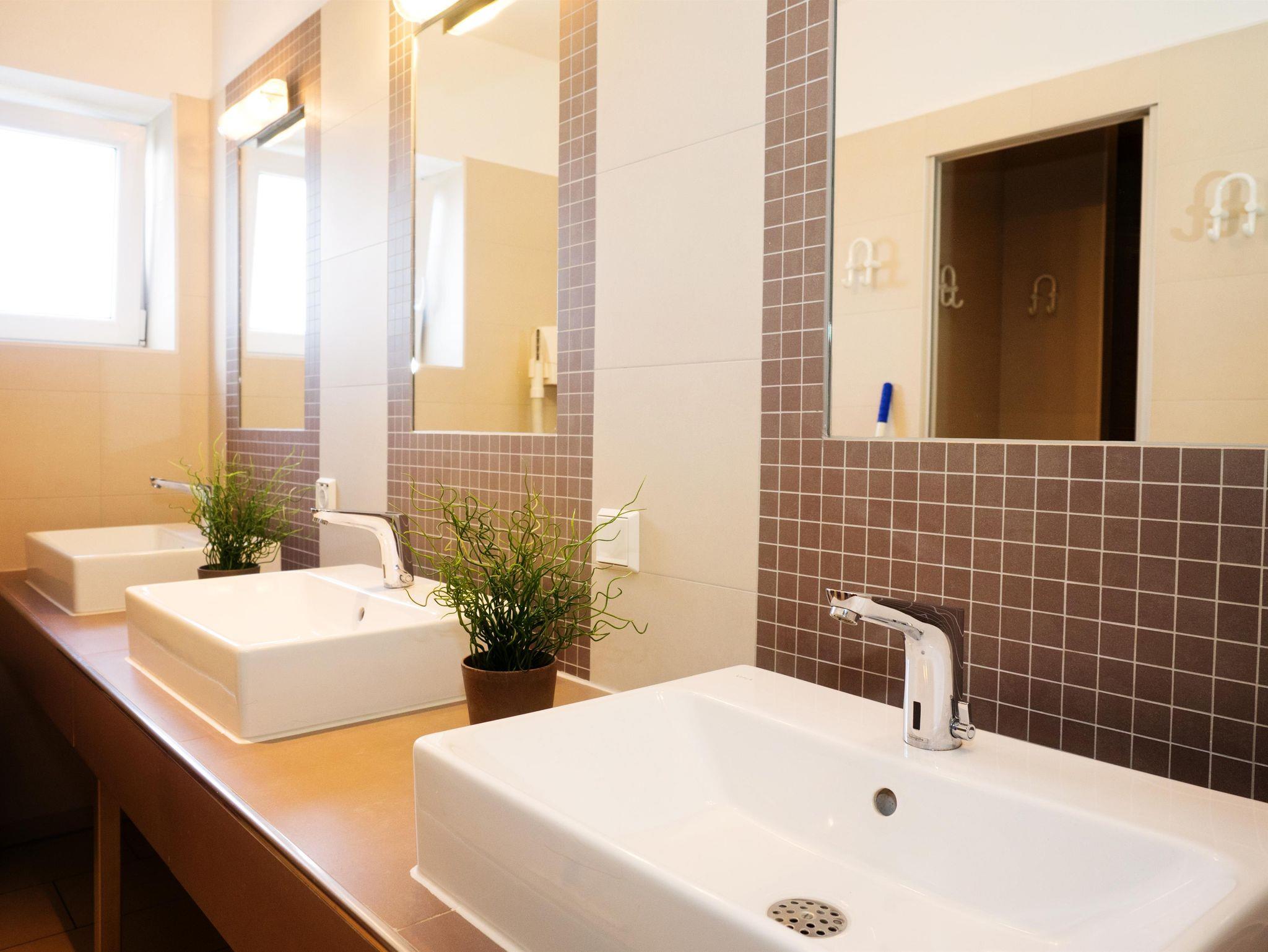 - Bad: Dusche, Waschtisch, Spiegel, separates WC