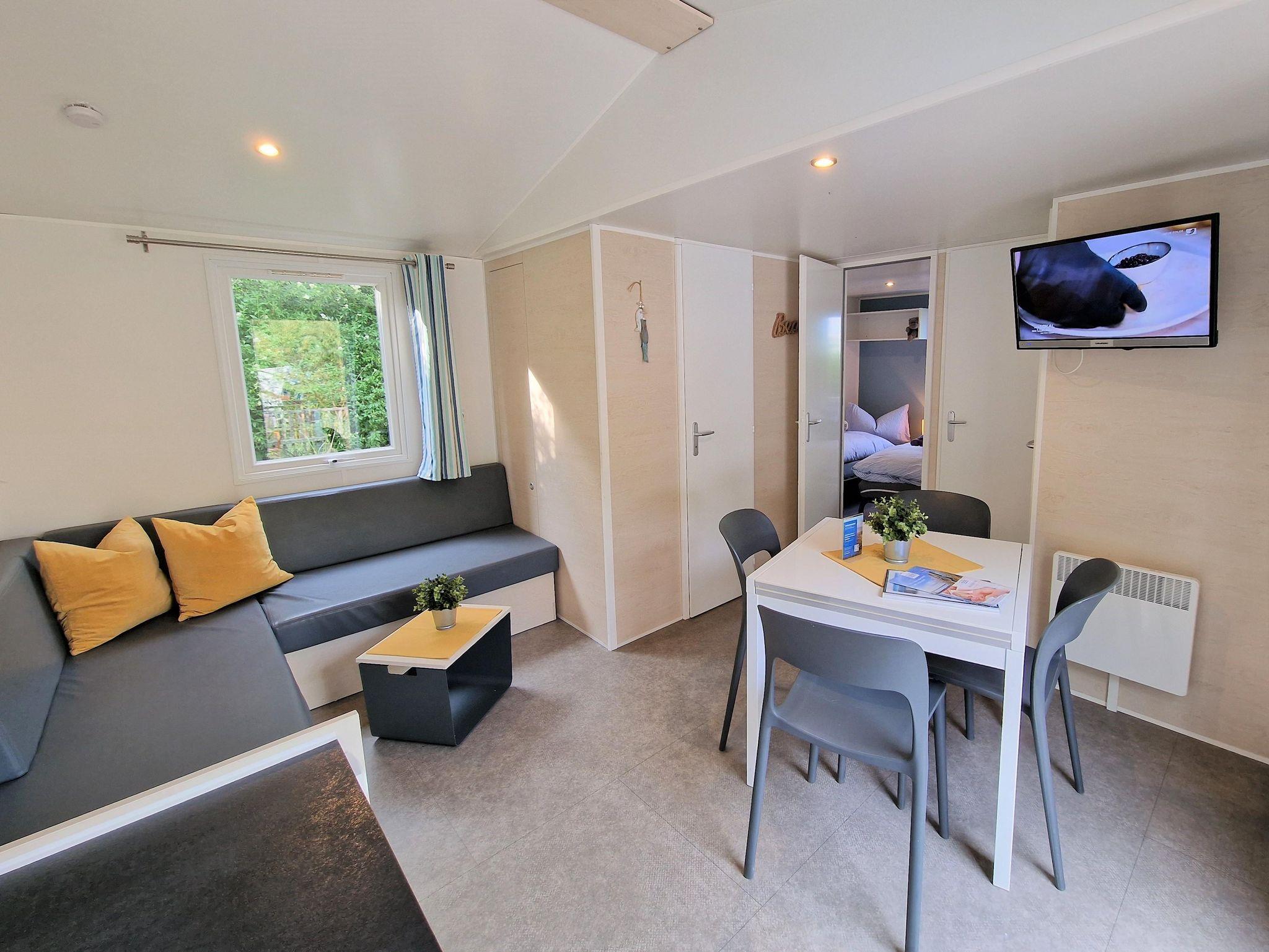 - Wohnzimmer: Esstisch, Sofaecke mit Schlaffunktion (für 2 weitere Personen), TV