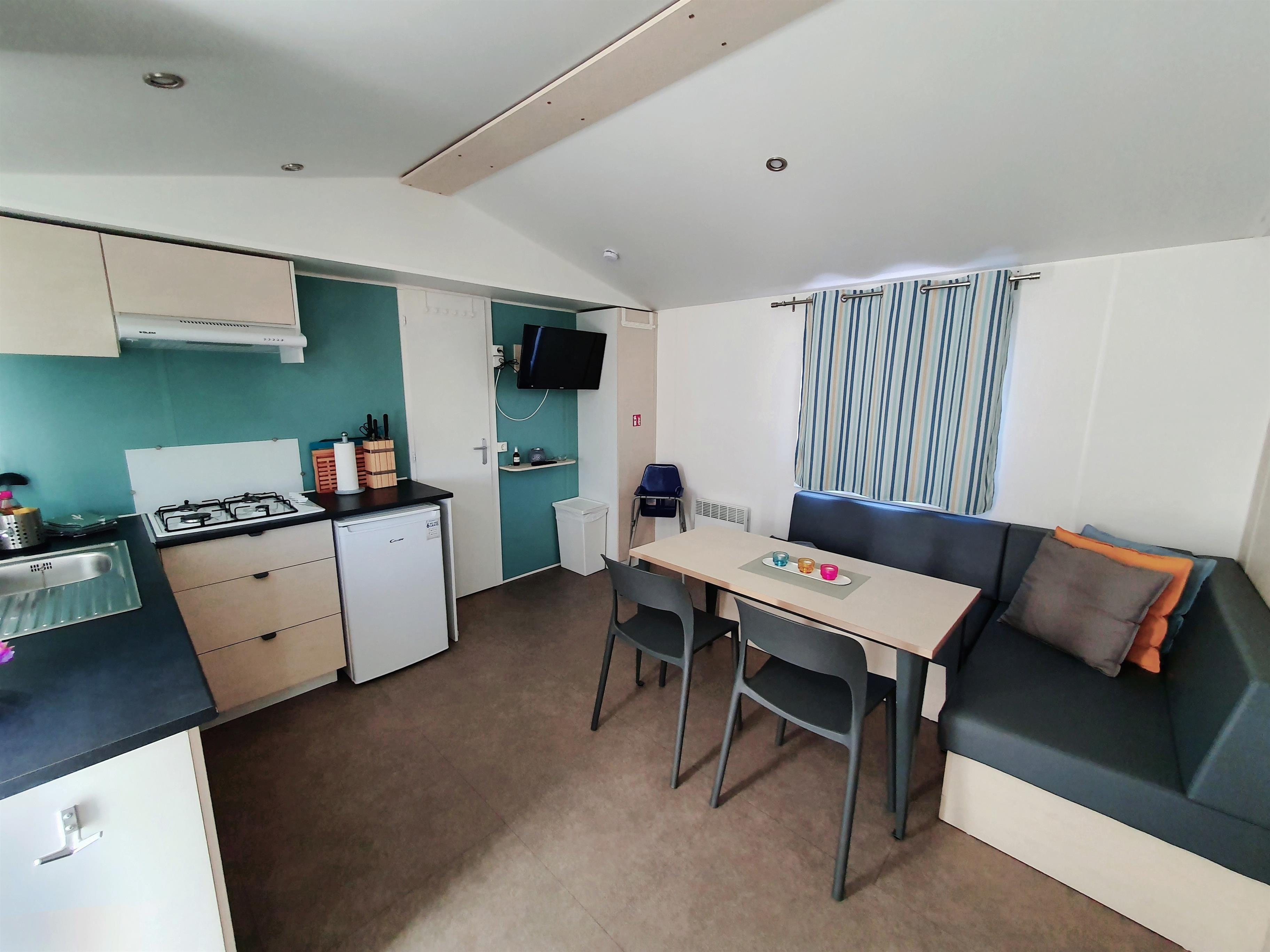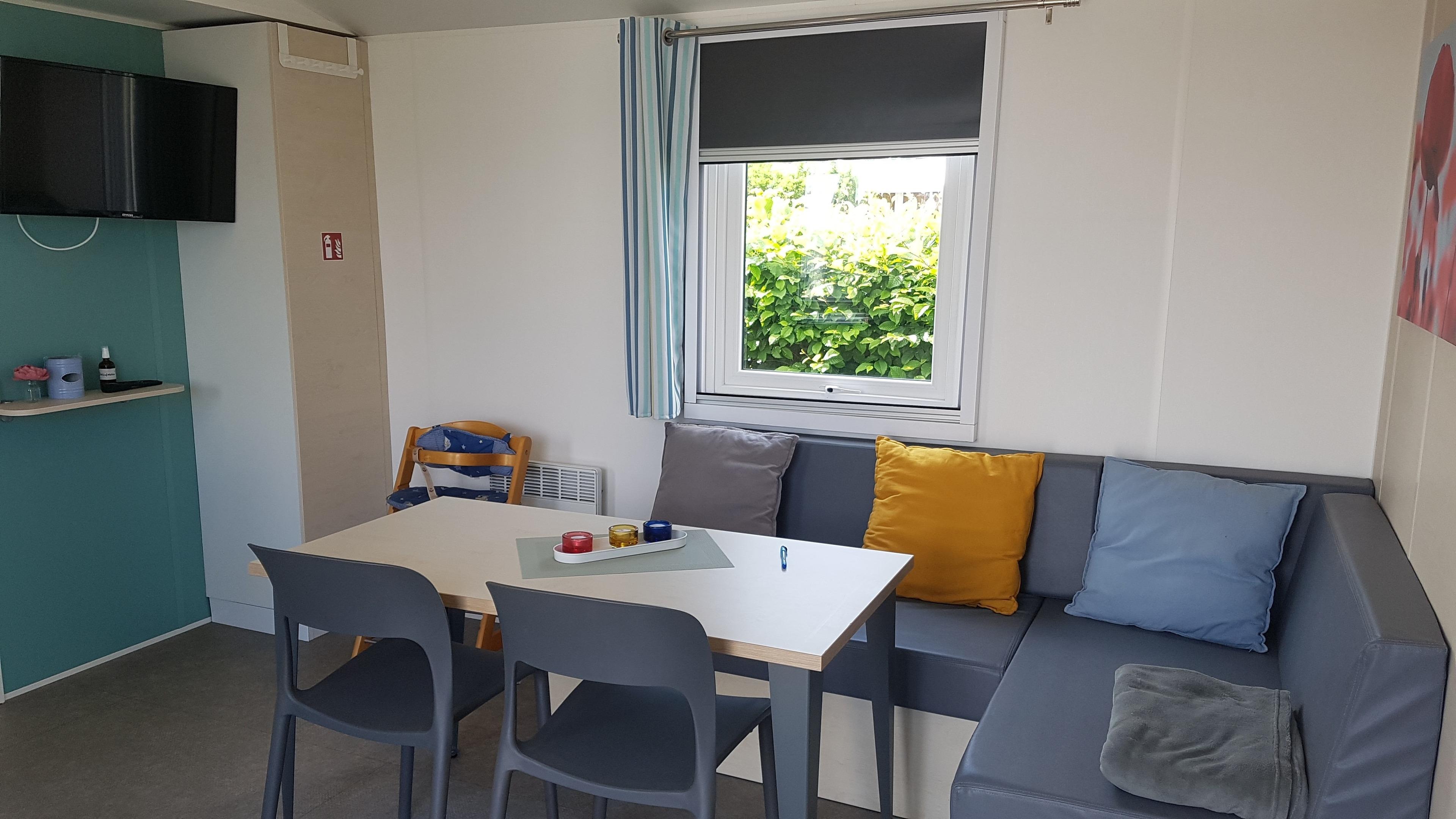 Unsere Mobilheime sind hell und modern ausgestattet und verfügen jeweils über einen kombinierten Wohn-/Essbereich mit integrierter Küchenzeile, 2-3 Schlafzimmern, 1-2 Bädern mit Dusche sowie 1-2 separaten WC. Eines der Bäder ist jeweils direkt von einem der Schlafzimmer aus zugänglich (en-suite). Auf der Terrasse stehen Ihnen ein eigener Strandkorb, ein Tisch mit Bänken und Sonnenschirm sowie ein Grill zur Verfügung. Ein kleiner Gartenbereich sorgt für weitere Entspannungsmöglichkeiten. Ihr Auto parken Sie direkt am Mobilheim.