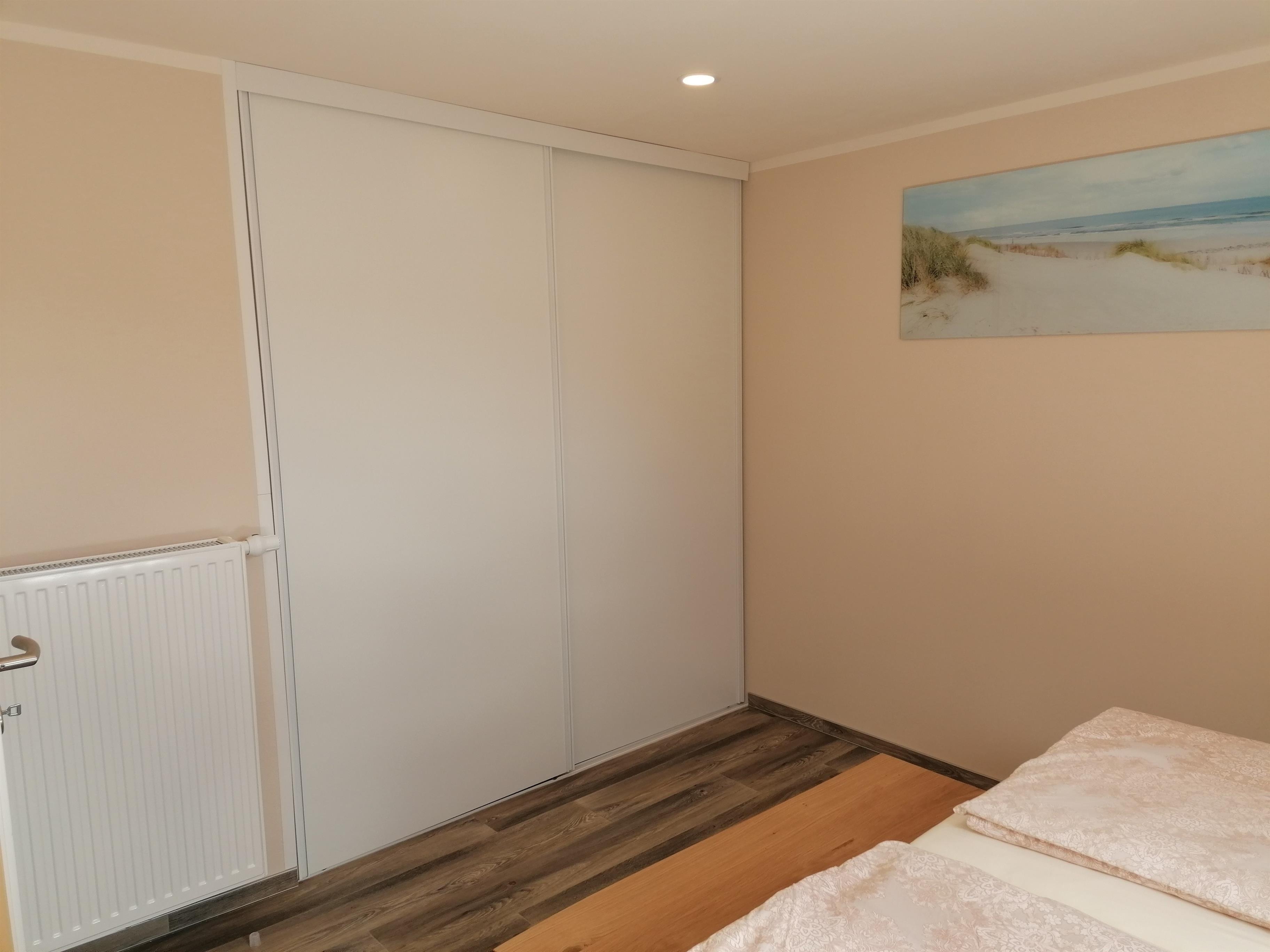 Sie verfügt über ein Schlafzimmer mit großen Doppelbett, einem Einbauschrank und einer großen Schlafcouch im Wohnzimmer. Ist deshalb auch für getrennt schlafenden Paare oder Freunde geeignet.