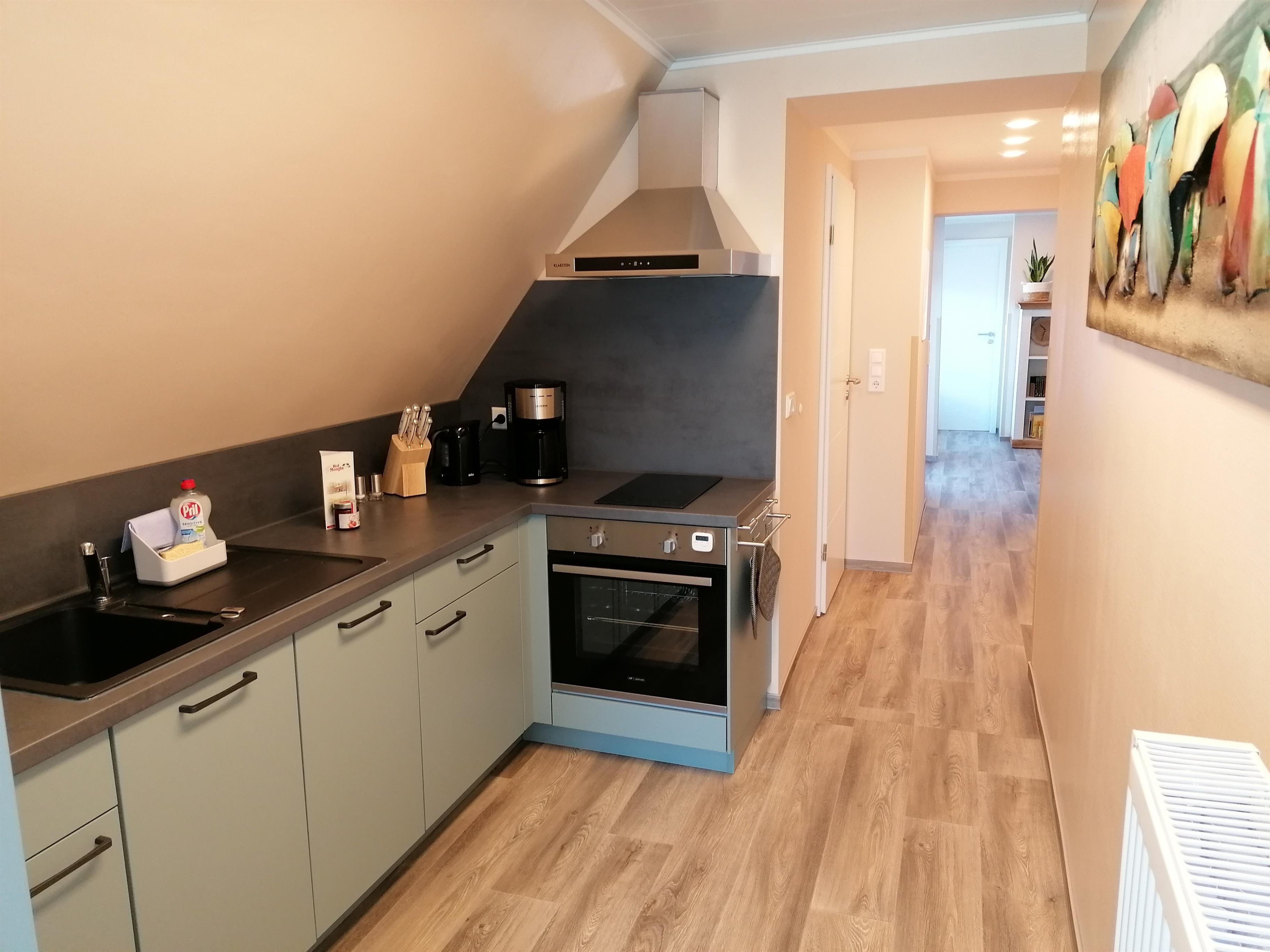 Die separate Küche ist voll ausgestattet mit Backofen, Herd, Geschirrspüler, Mikrowelle, Kaffeemaschine, Toaster, Kühlschrank mit integriertem Gefrierfach uvm.