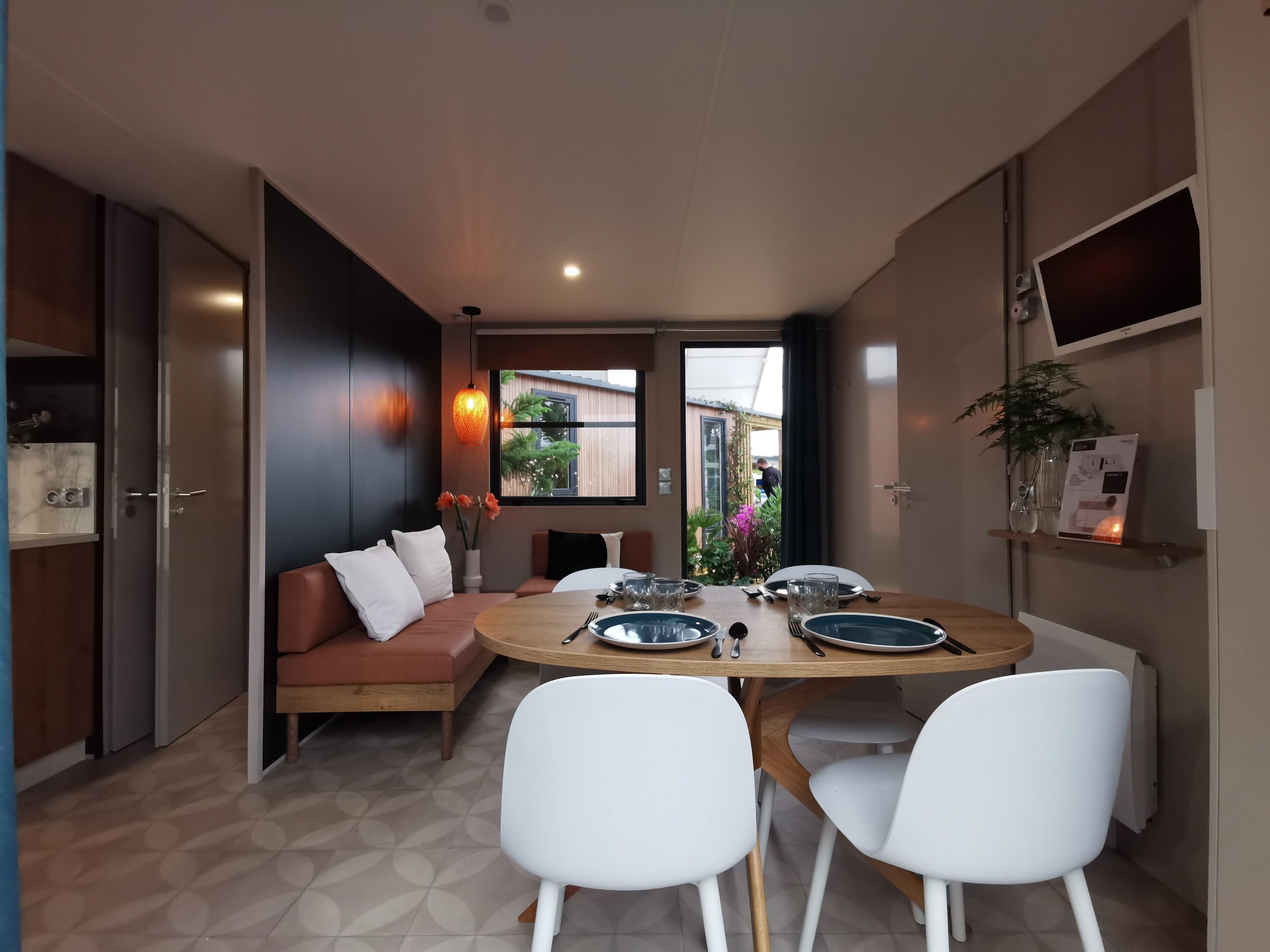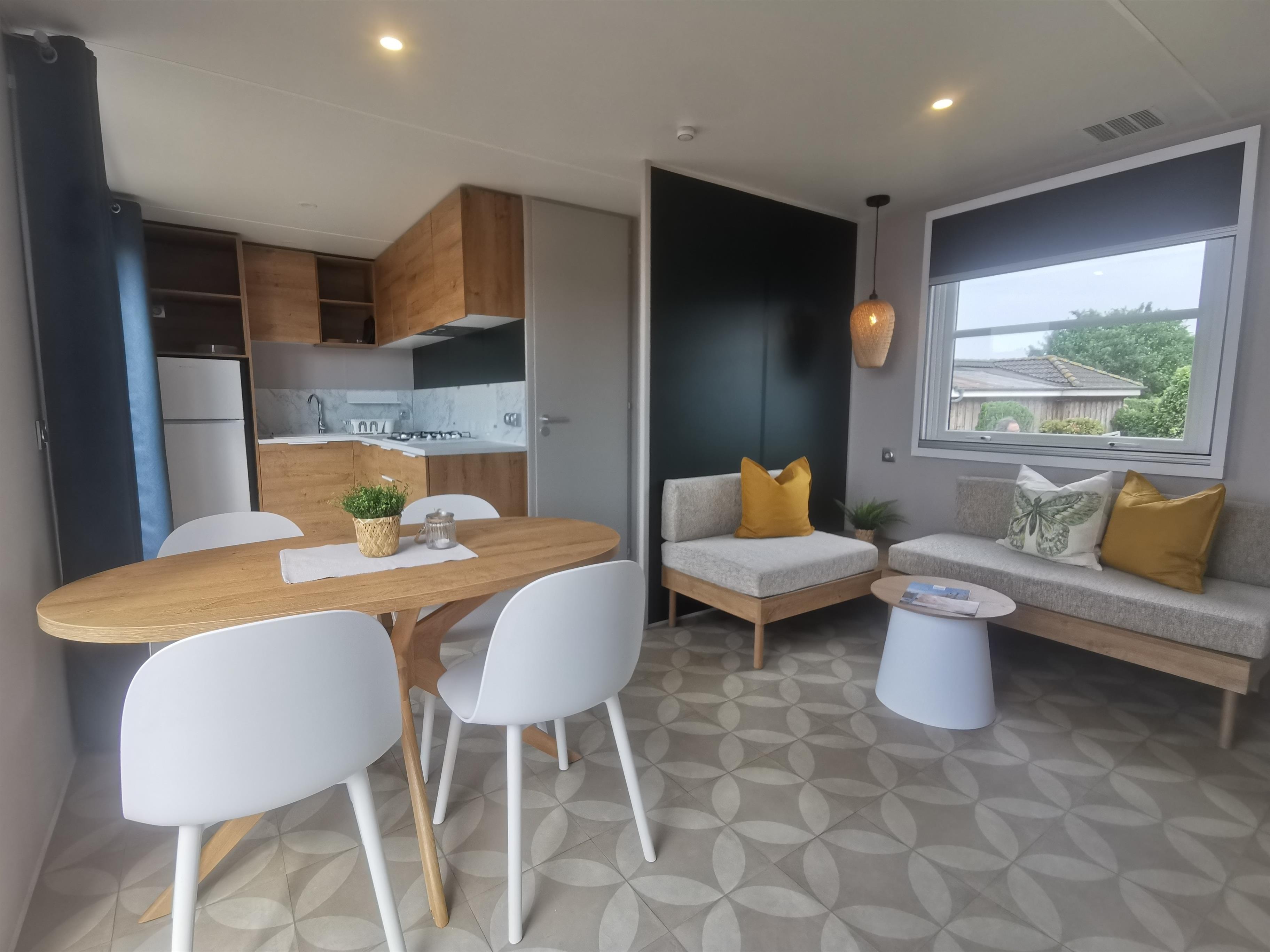 Komfortables 32m² Mobilheim "Bootsmann" nahe Ostsee-Strand mit Wellnessangeboten und eigenem Strandkorb.