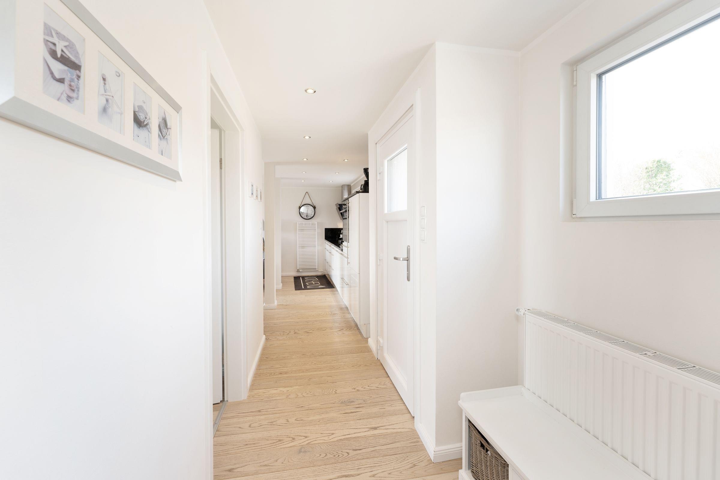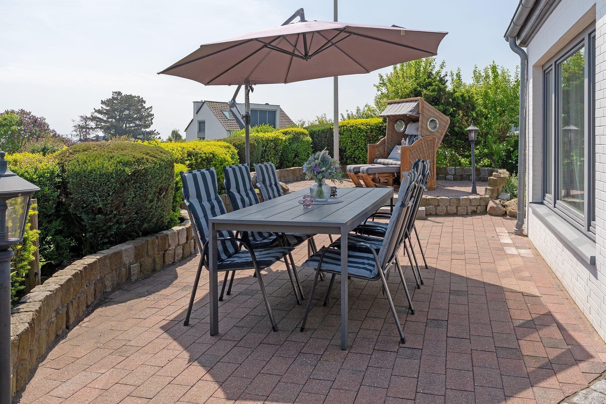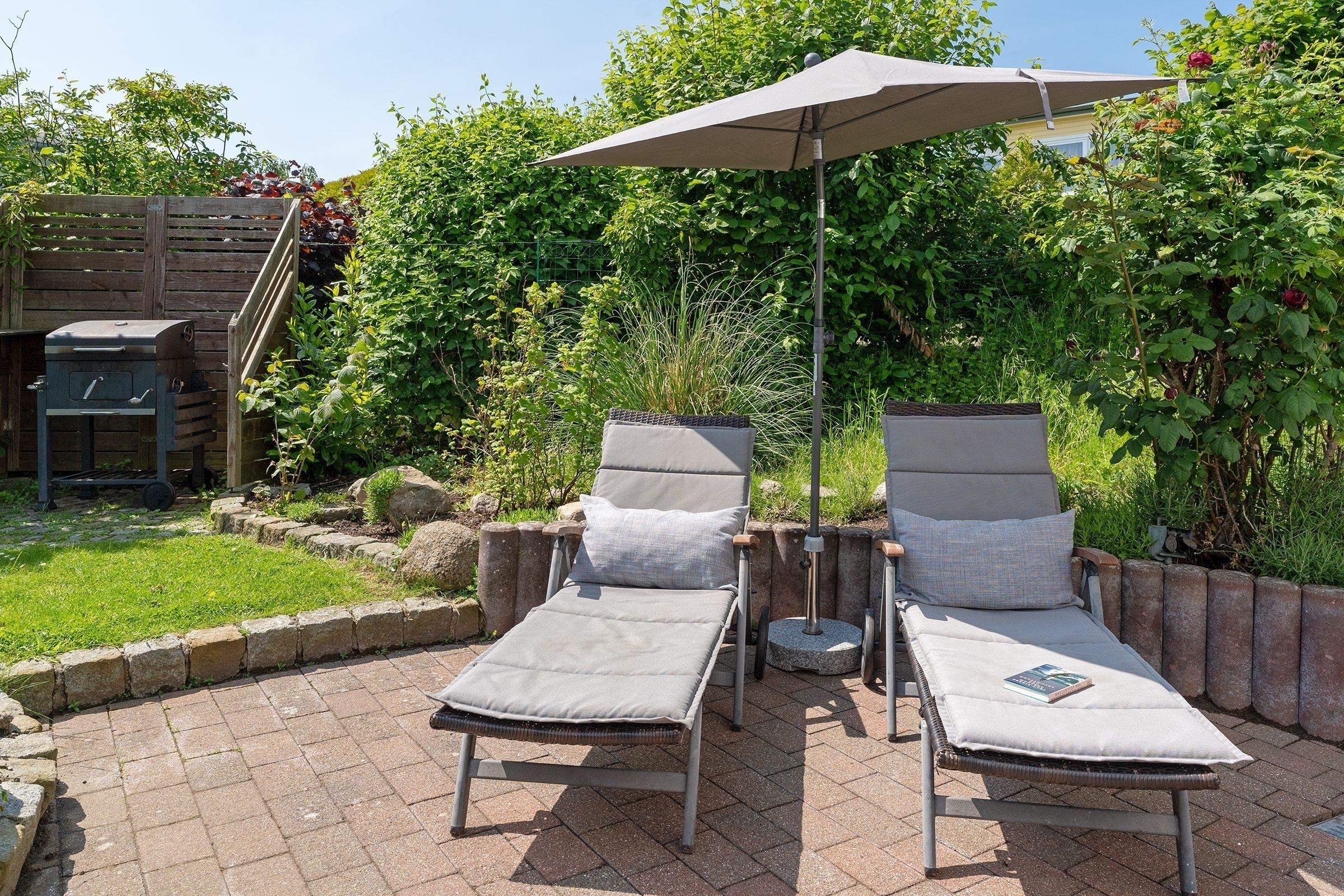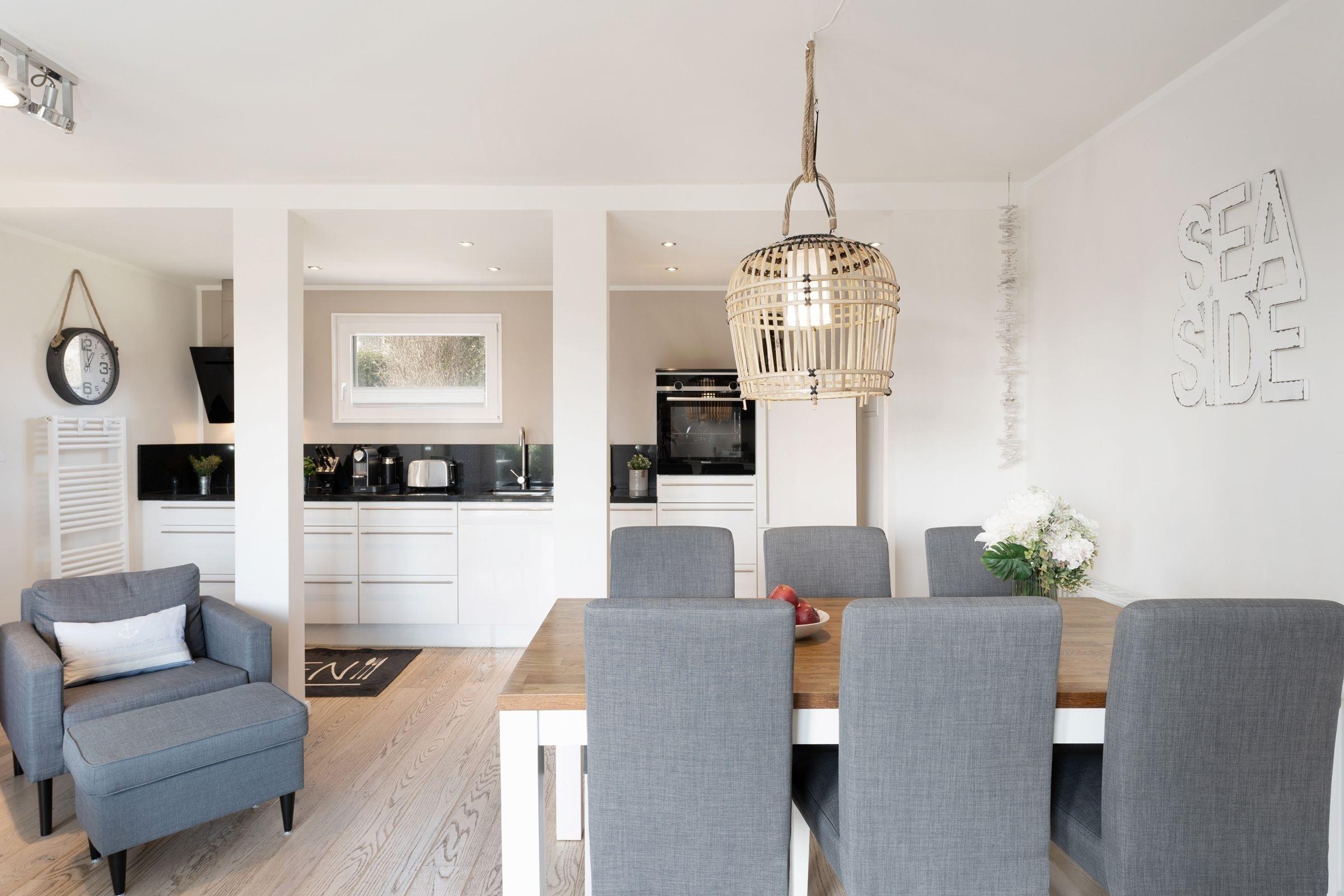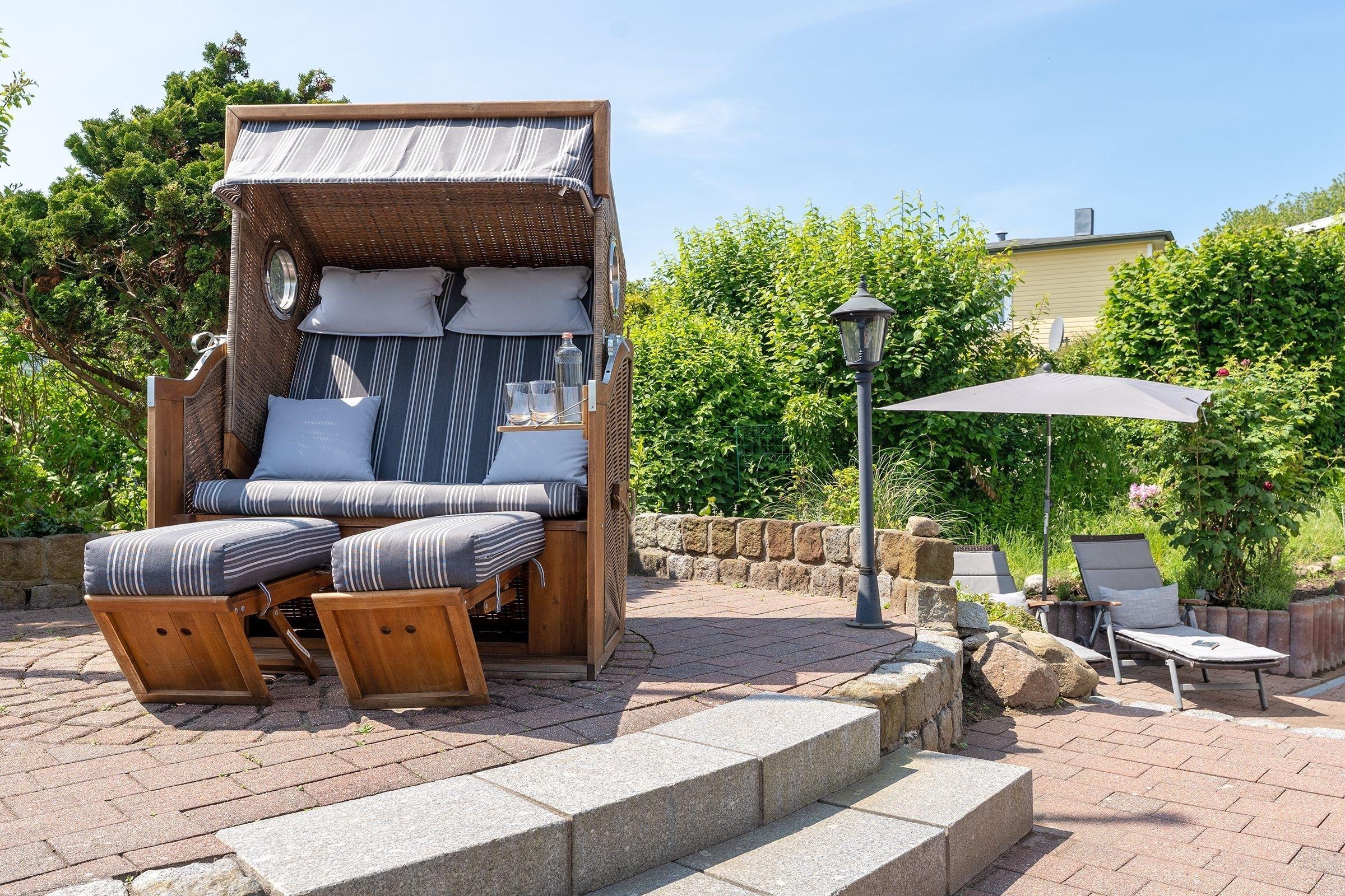 Im Haus erwartet Sie ein großzügiges, modernes Wohnzimmer mit Essplatz für 6 Personen und Flat-TV sowie eine gut ausgestattete Einbauküche mit Geschirrspüler. Vom Wohnzimmer haben Sie eine direkten Zugang zur Terrasse und auch einen Zugang zu einem der Schlafräume mit Doppelbett (2x 90x200 cm) und Flat-TV. Das angrenzende Duschbad mit WC macht es perfekt. Ein weiteres Duschbad mit WC erreichen Sie vom Flur, ebenso zwei weitere Schlafräume. Ein Schlafraum mit Doppelbett (2x 90x200 cm) und Flat-TV. Ein weiterer Schlafraum mit 2 Einzelbetten (je 90x190 cm). Als Highlight wartet eine Außendusche im Garten auf Sie. Lassen Sie den Tag auf der Terrasse mit eigenem Strandkorb entspannt ausklingen.