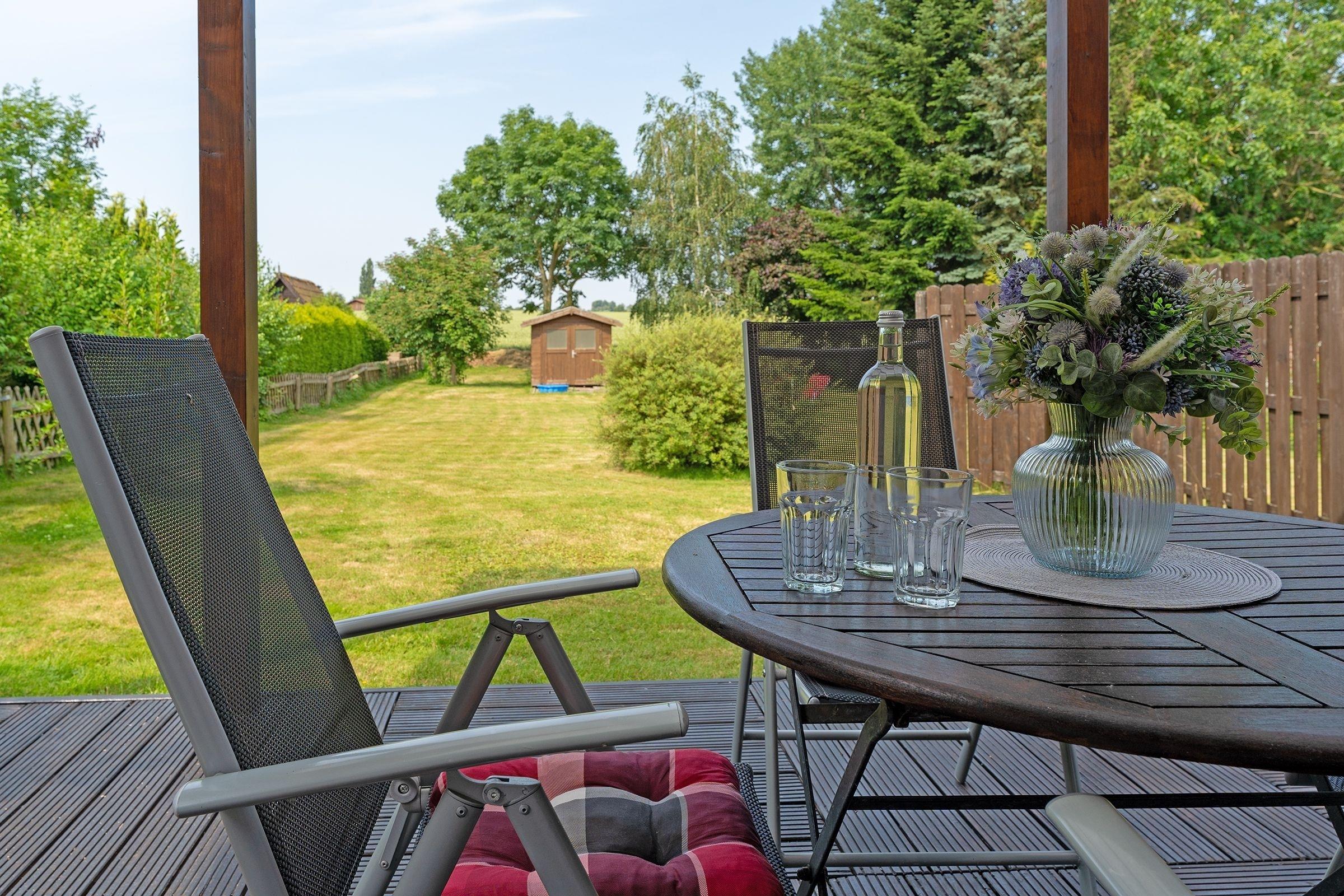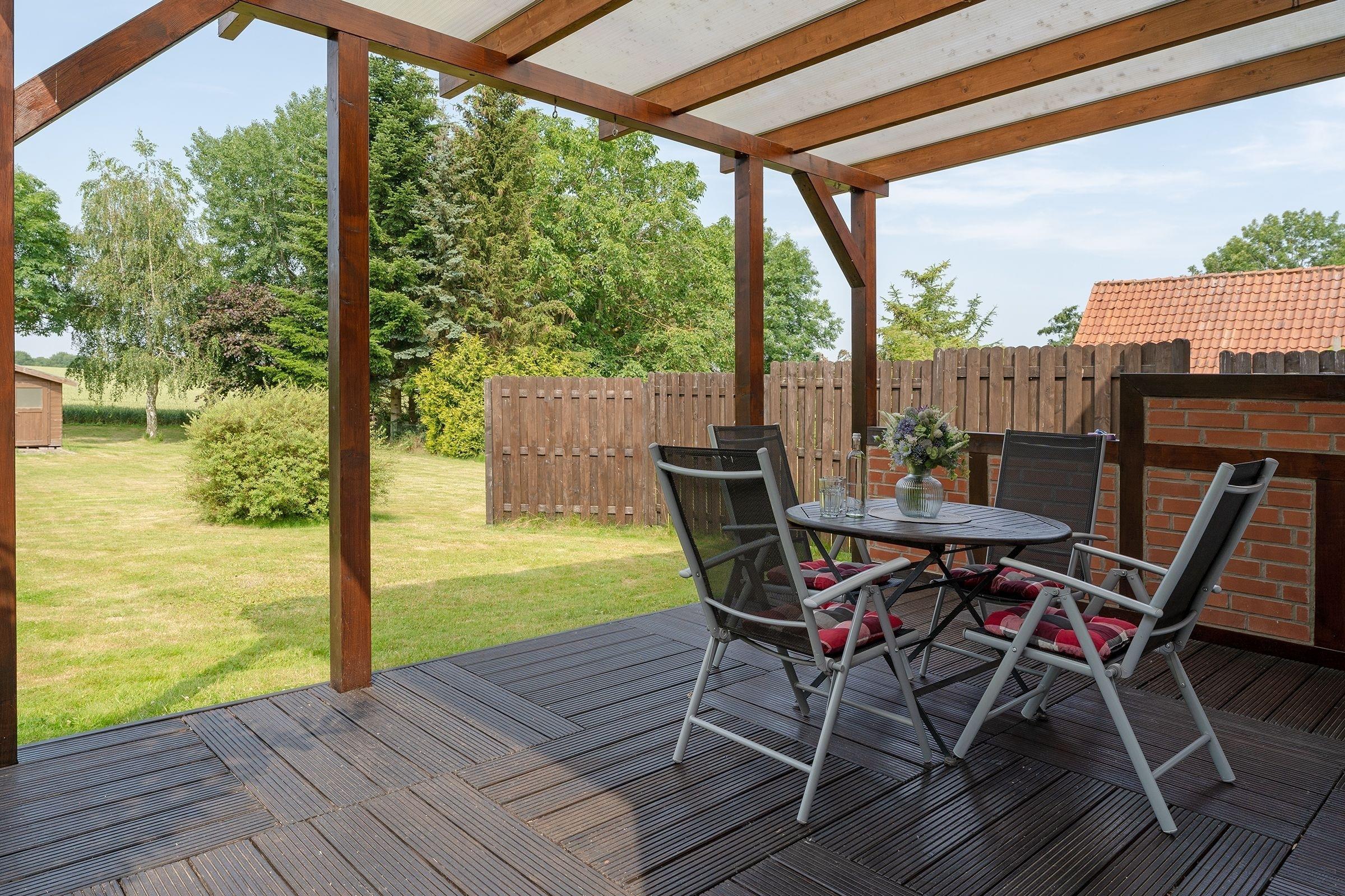 Traumurlaub im idyllischen Schashagen - Logeberg: geräumiges 3-Zimmer-Ferienhaus mit einer Wohnfläche von ca. 82 m² mit 2 Terrassen und großem Garten für bis zu 4 Personen.