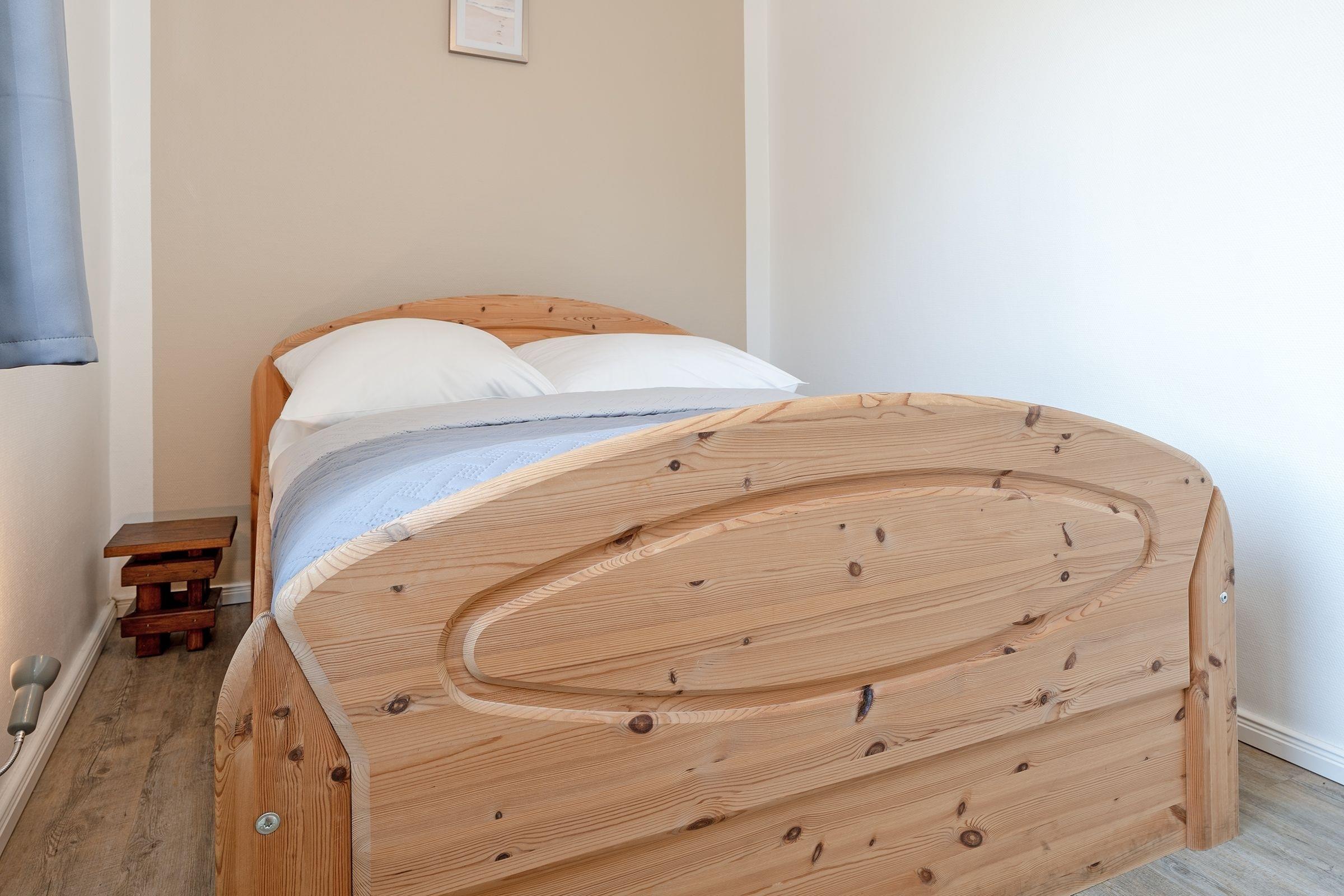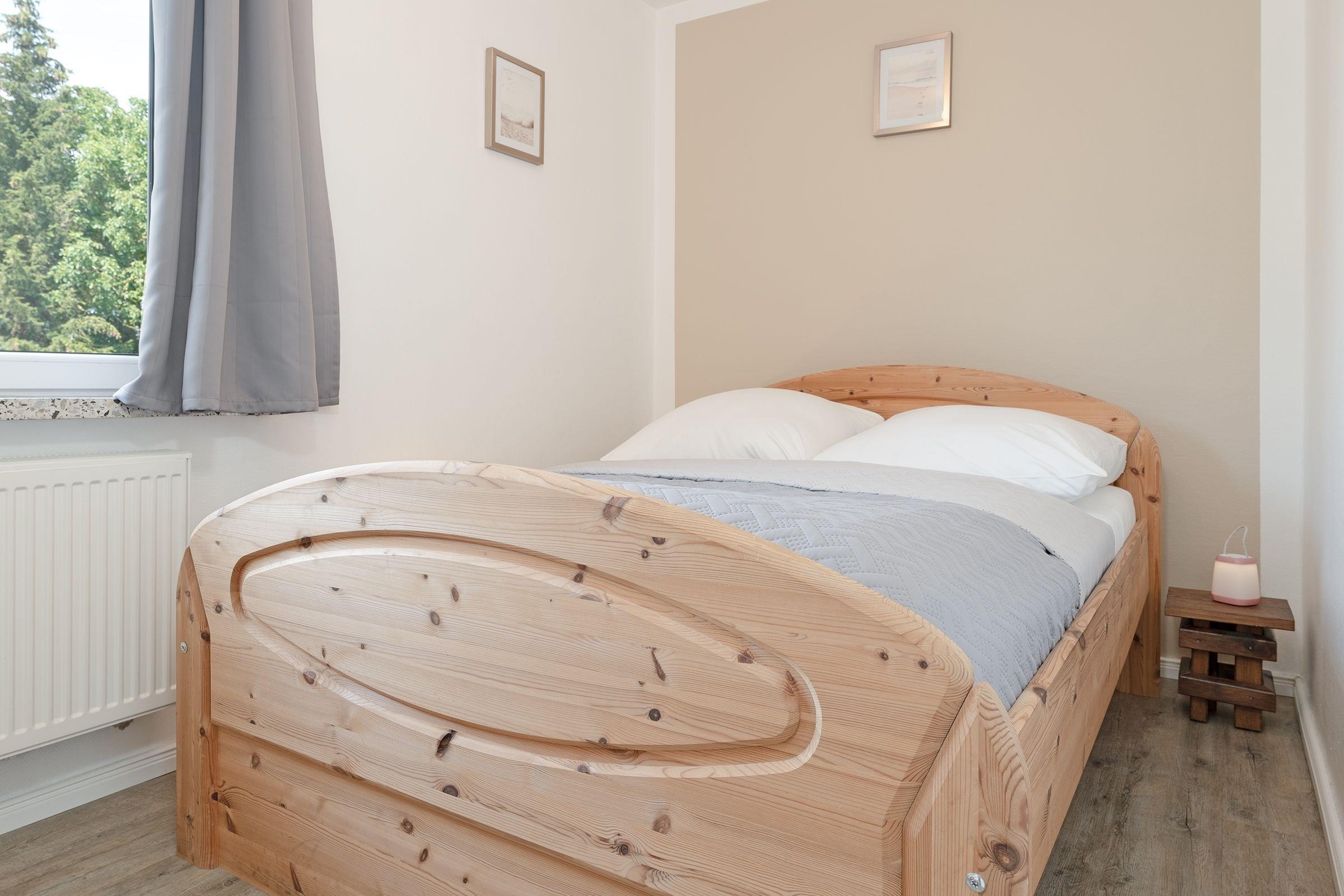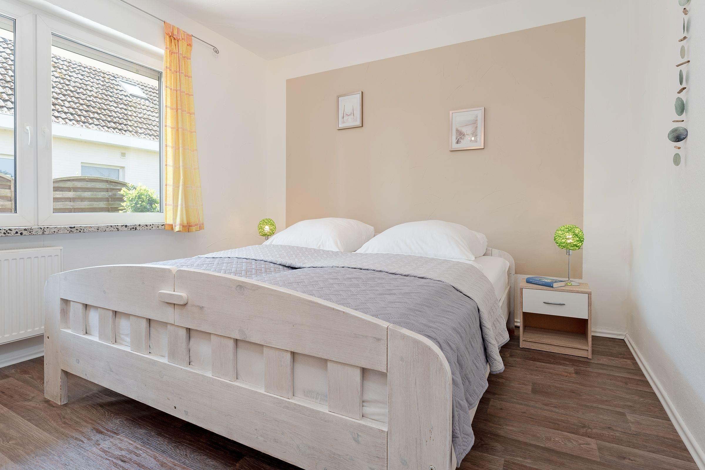 2. Schlafzimmer: 1 Doppelbett (140x200 cm), Verdunkelung: Vorhänge, kein Platz für ein Babybett