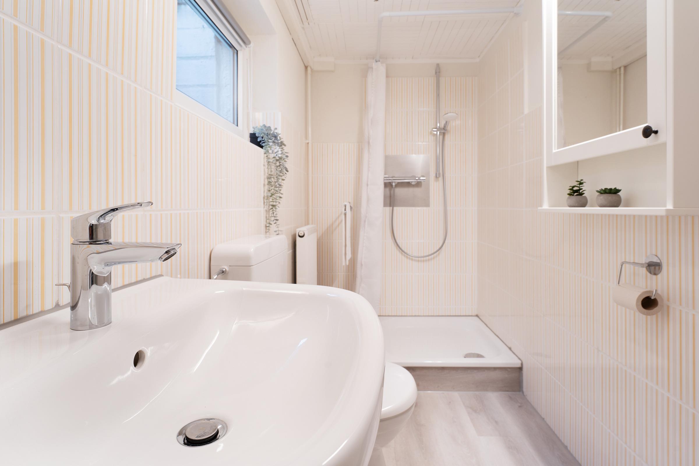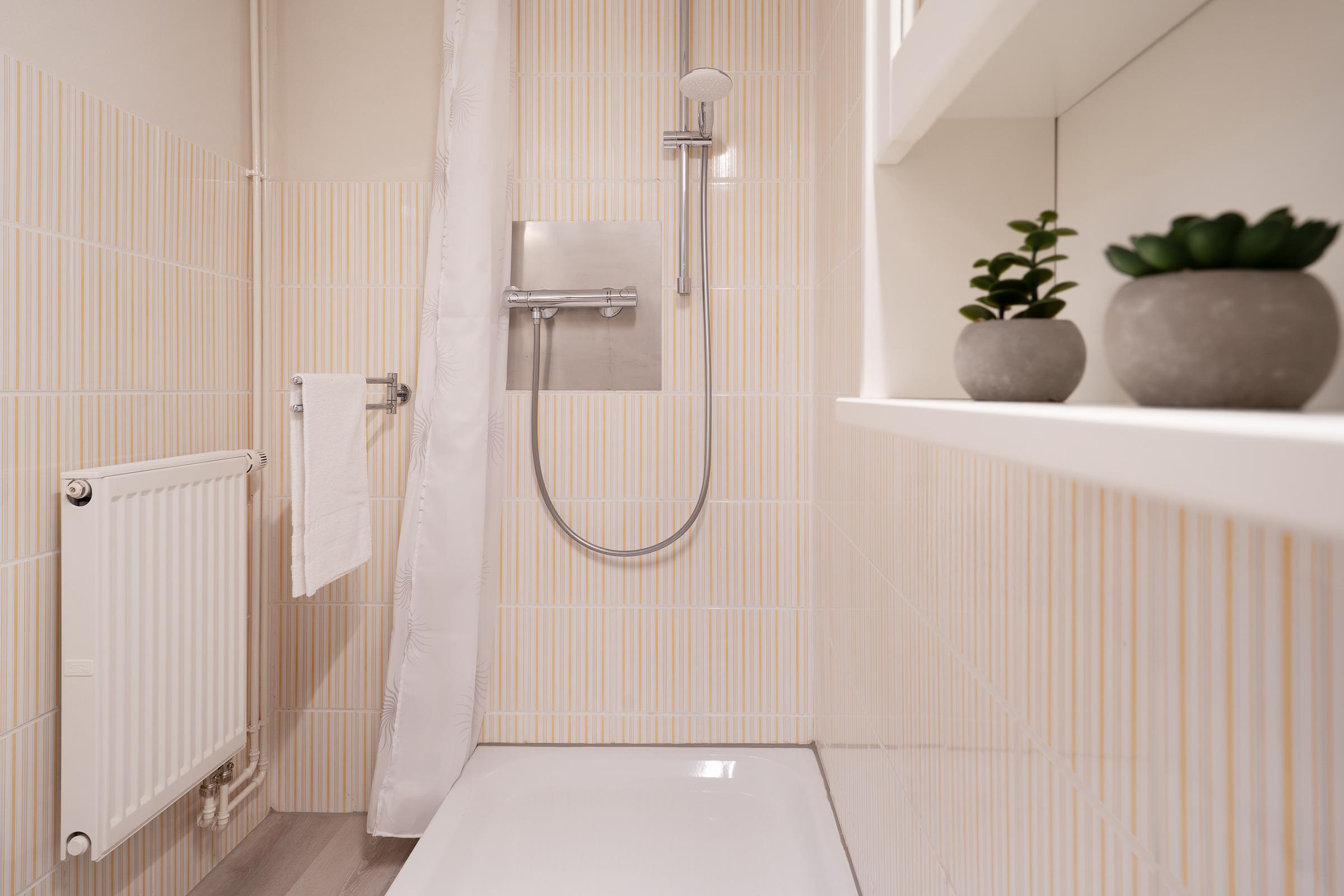 Für eine erholsame Nachtruhe sorgen ein bequemes Boxspringbett (2x 90x200 cm, durchgehender Topper) sowie ein Schlafsofa (140x200 cm) - beide im Wohn-/Schlafraum integriert. Im hellen Duschbad können Sie sich für den anstehenden Urlaubstag frisch machen.