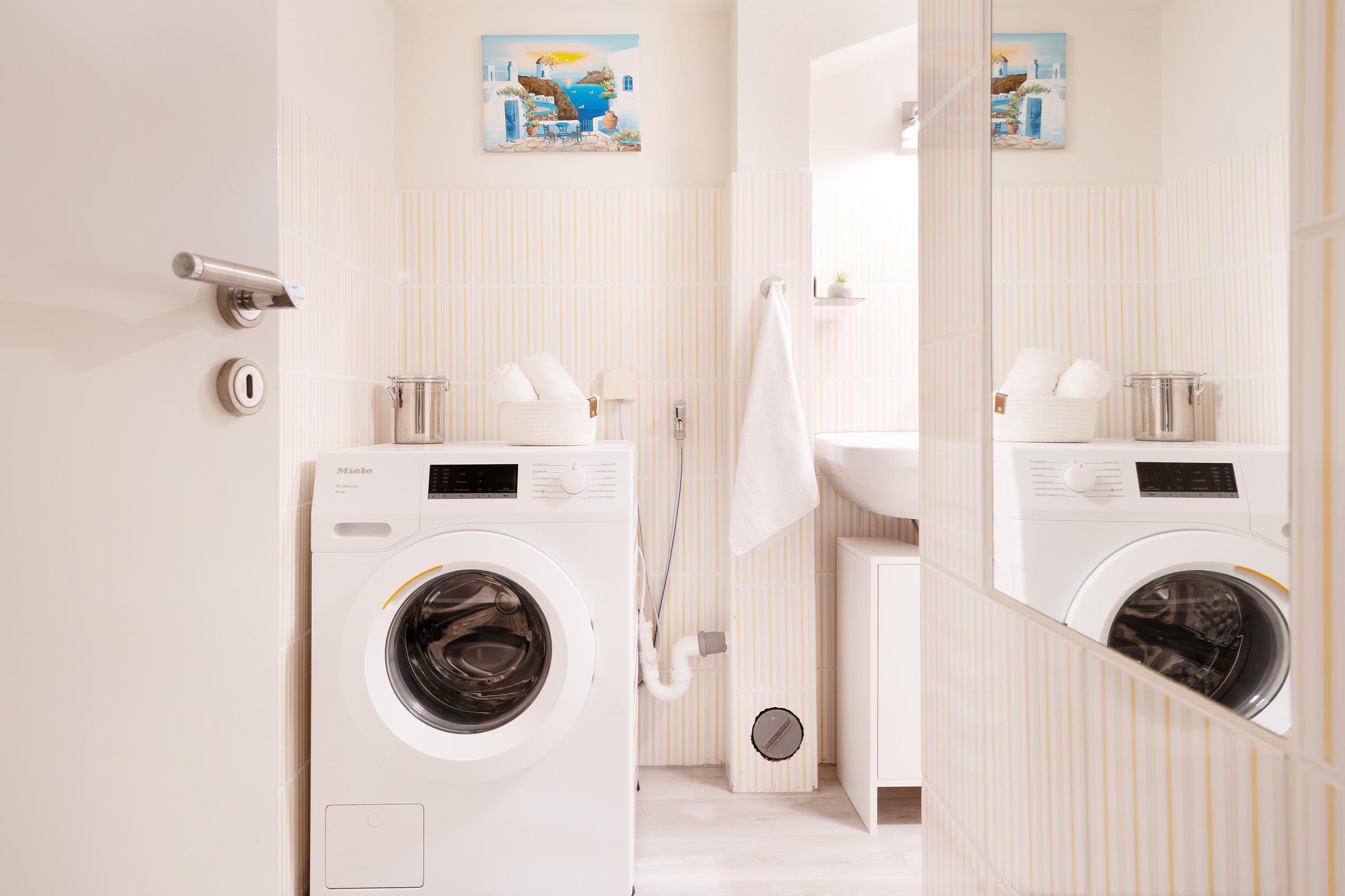 Ein PKW-Außenstellplatz ist für Sie reserviert. Für Ihre mitgebrachten Fahrräder steht ein abschließbarer Fahrradabstellraum zur Verfügung. Zum Waschen Ihrer Urlaubsgarderobe können Sie die wohnungseigene Waschmaschine nutzen. WLAN ist inklusive.