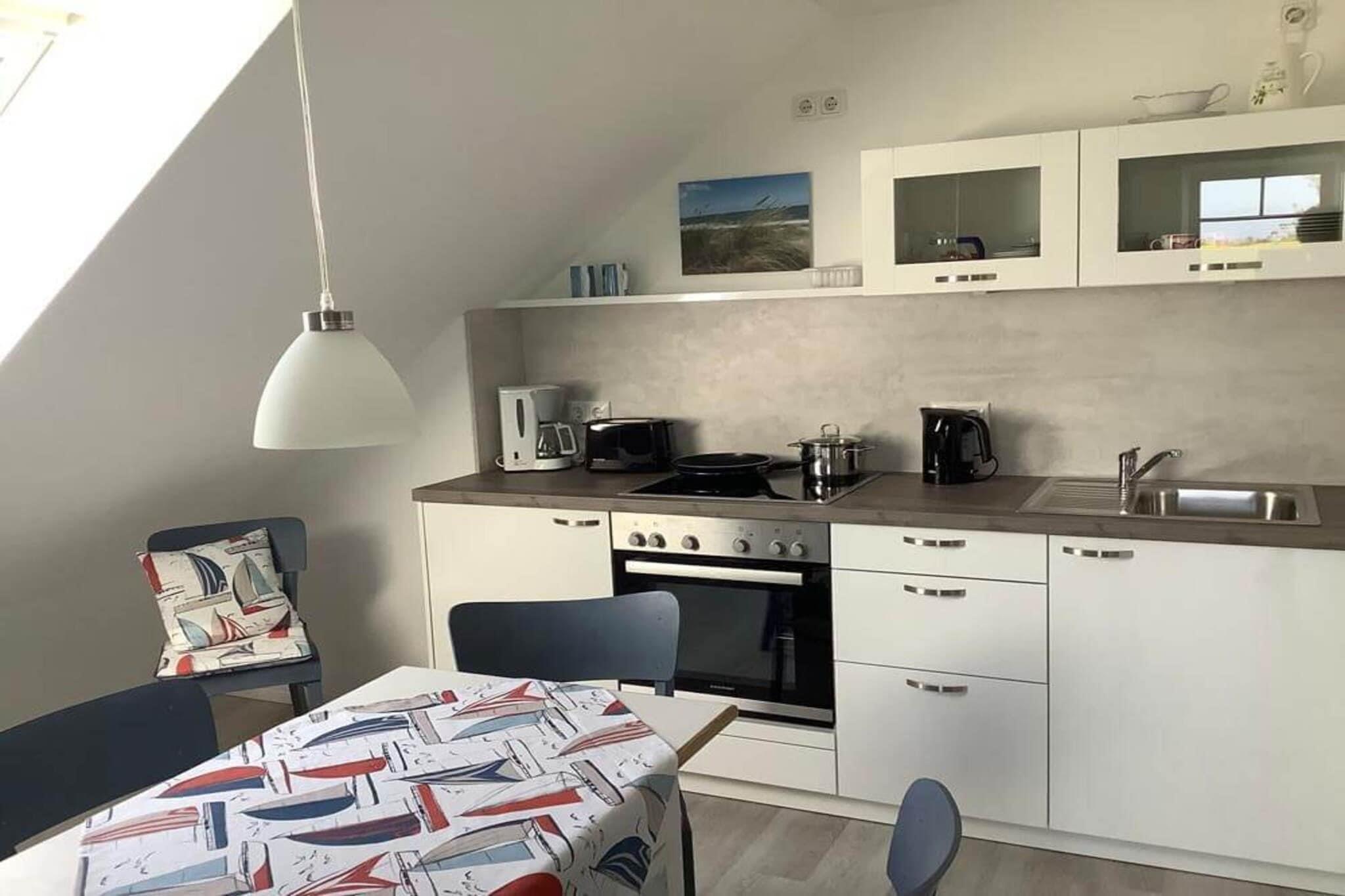 Dieses wunderschön und ruhig gelegene Ferienhaus bietet Platz für 2 Familien oder auch befreundete Paare. Es besteht aus 2 separaten Wohnungen im Erd- und im Obergeschoß. Sie sind beide hell und freundlich eingerichtet, wobei die Wohnung im Erdgeschoß noch zusätzlich einen Kamin bietet. Von beiden Wohnungen haben sie einen tollem Blick über die angrenzenden Felder und Natur. So können Sie über den Komfort von zwei vollständig eingerichteten Küchen und Wohnzimmern verfügen. Auch Sat-TV, eine HiFi-Anlage und freies WLAN sind vorhanden. Die offenen Küchen sind voll ausgestattet mit Backofen und Ceranfeld, Mikrowelle, Geschirrspüler und vielen Elektrokleingeräten. Je ein großes Schlafzimmer ist vorhanden mit großem Doppelbett. Jede Wohnung verfügt über ein modernes Duschbad mit Fußbodenheizung. Im Außenbereich des Frienhauses stehen den Gästen an 2 Seiten Terrassen zur Verfügung, eine davon mit elektrischer Sonnenmarkise. Der große Garten bietet mehrere Sitzmöglichkeiten und ein Gartenhaus mit weiteren Sitzmöbeln, sowie der Möglichkeit, Fahrräder unterzustellen. Highlights inklusive: Alle verbrauchsabhängigen Energiekosten WLAN kostenloser Pkw-Stellplatz am Ferienhaus Schlagsdorf ist ein kleines Dorf im schönen Inselwesten mit einem idyllischen Dorfteich. Das Ferienhaus liegt sehr ruhig am Dorfrand und hat einen tollen Ausblick über die angrenzenden Felder in Richtung Ostsee. Der Badestrand mit Strandkörben in Bojendorf ist ca. 3 km entfernt. Ebenso weit ist es zum Strand in Westermakelsdorf, einem beliebten Surfrevier. Auf den vielen Wegen durch die Felder und auf den Deichen kann man herrliche Fahrradausflüge machen, z.B. zu den Leuchtürmen Flügge oder Westermakelsdorf und zum kleinen Hafen in Orth. Einkaufsmöglichkeiten gibt es im 3 km entfernten Petersdorf. Außer einem Supermarkt und einem Discounter gibt es einen Bäcker, einen Friseur, eine Arzt- und eine Physiotherapiepraxis. Kleine Restaurants, Cafés und Boutiquen laden zum Verweilen ein. Auch die schöne Petersdorfer Kirche und das Wasservogelreservat Wallnau sind einen Besuch wert.