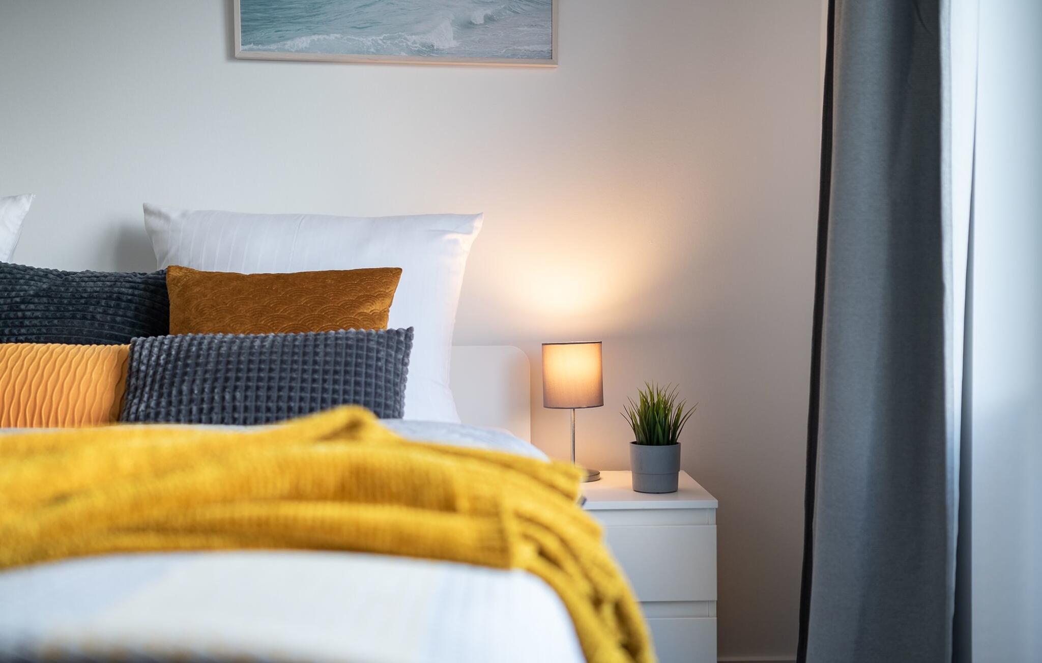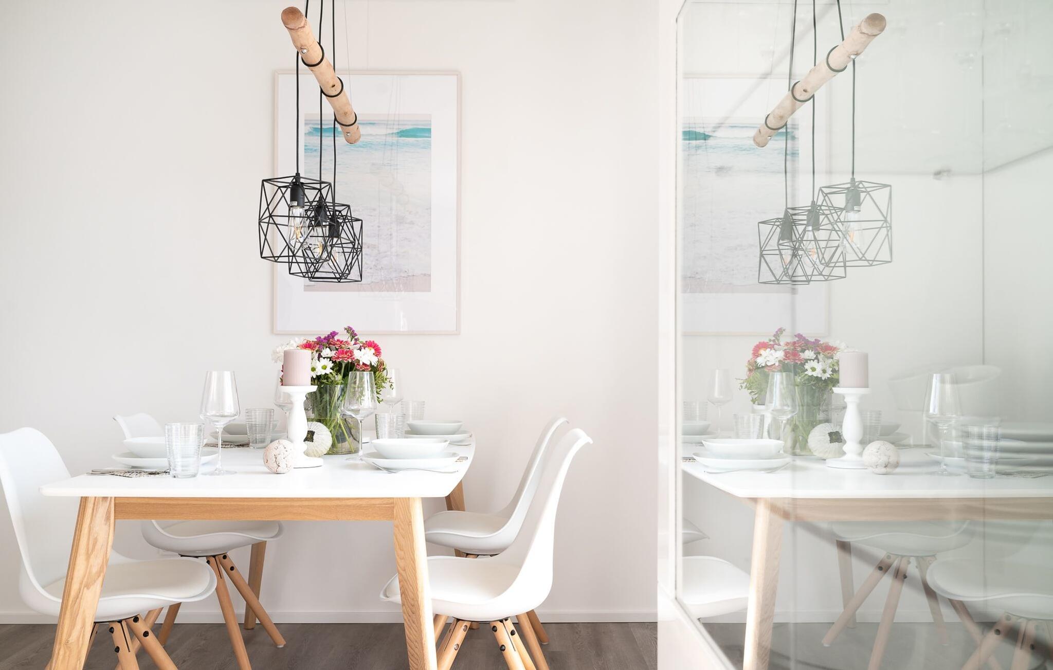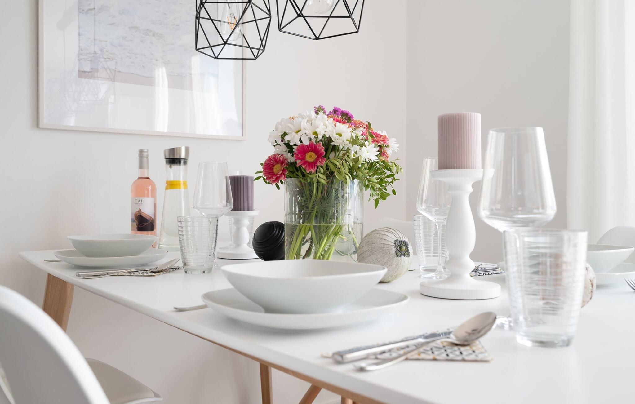Mit moderner, nordischer Einrichtung empfängt euch der großzügige und helle Wohn-/Essbereich, aus dem man dank der bodentiefen Fensterfront sogar einen Blick auf das bunte Treiben des Hafens erhaschen kann. Offen, hell und freundlich gestaltet bietet die Wohnung die perfekte Ausgangslage für einige urlaubstypische Freizeitaktivitäten. Lasst es euch z.B. auf dem gemütlichen Sofa gutgehen, schaltet eure Lieblingsserie ein oder hört einfach nur dem prasselenden Feuer des Kamins zu.
