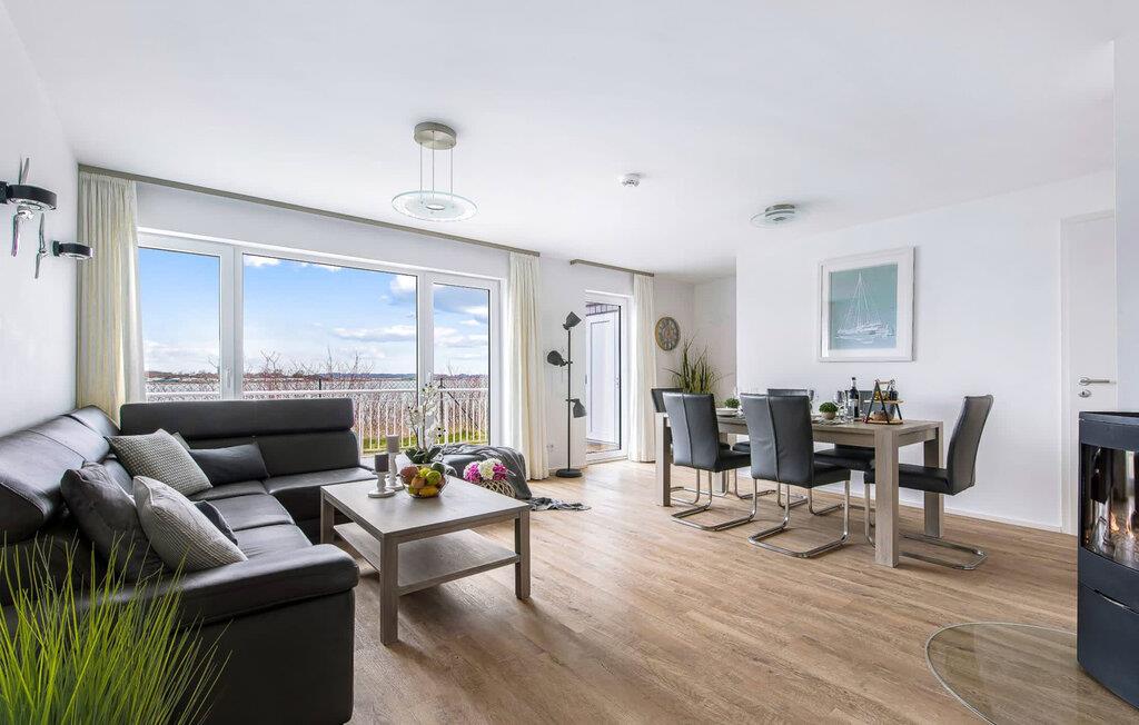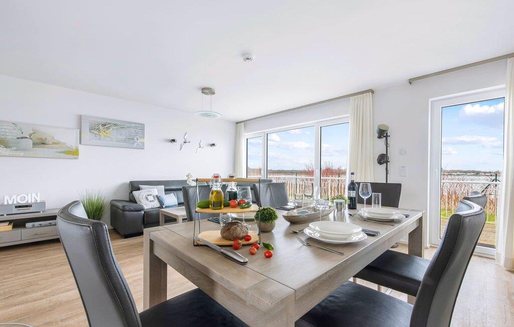 Das Ferienhaus Schleijuwel erstreckt sich über drei Ebenen. Lichtdurchflutet gestaltet sich der Wohn- /Essbereich im Erdgeschoss des Ferienhauses. Durch eine große Fensterfront fällt der Blick über die angrenzende Terrasse auf das idyllische Schleiufer. Was sich vor der Tür abspielt, ist ein wahres Naturspektakel: Die Ostseebrise wiegt das Schilf am Ufer sanft hin und her, während Enten und Schwäne munter in den Tag starten. Bei einem Kaffee auf der Terrasse sorgen vorbeifahrende Segelschiffe für das perfekte Panorama. Dank Süd-West Ausrichtung sind neben vielen Sonnenstrahlen auch traumhafte Sonnenuntergänge garantiert. Ob bei einem geselligen Grillabend oder entspannt mit einem Buch, die atemberaubende Kulisse direkt vor dem Haus lässt Urlaubsherzen höher schlagen.