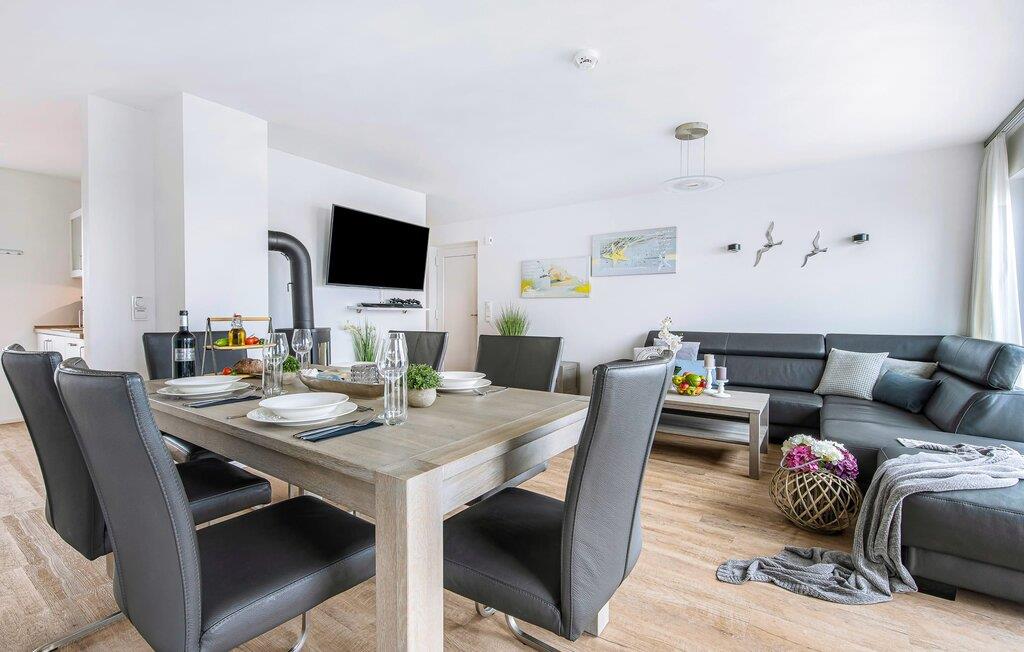 Sehr gemütlich gestaltet sich der Wohn-/Essbereich. Auf der komfortablen Sitzlandschaft oder am großen Esstisch, bei knisterndem Kaminfeuer und mit Fußbodenheizung im gesamten Objekt, sorgen der große Flatscreen-TV und die Play Station 4 für Entertainment an grauen Tagen.