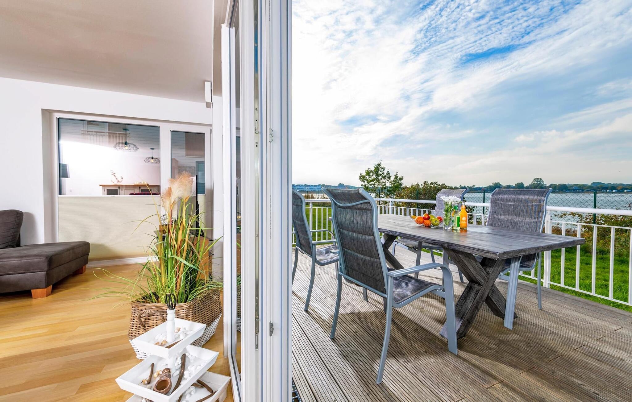 Auf vier Ebenen finden in diesem großzügigen Ferienhaus sechs Personen Platz für einen Traumurlaub. Auf jeder Wohnebene befindet sich ein Außenbereich in Form einer angrenzenden Terrasse mit phänomenalem Fjordblick. Gemeinsames Grillen auf Wasserebene oder romantischer Sonnenuntergang auf der Dachterrasse mit 360 Grad Wasserblick bis nach Schleimünde. Sonnenbaden oder chillen auf den hochwertigen Gartenmöbeln, Urlaubsfeeling ist in diesem großzügigen Ferienhaus mit vielen Rückzugsorten garantiert.