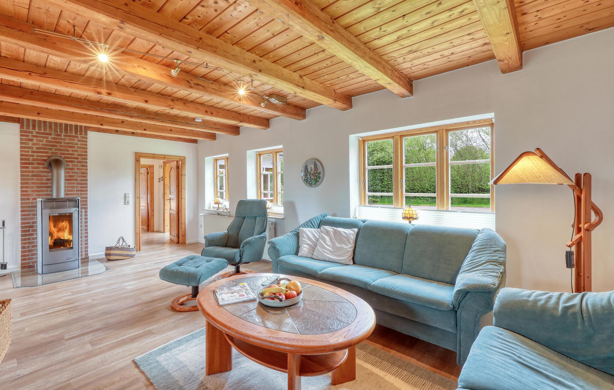 Charmantes Reetdachhaus in Tolk mit Kamin, Garten und moderner Ausstattung für erholsame Ferien.
