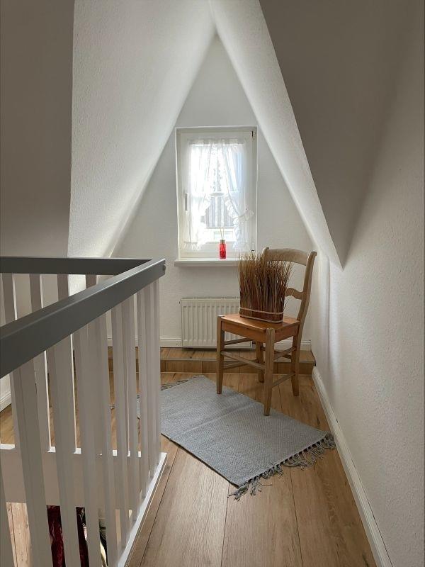 Zentral gelegene Wohlfühloase oberhalb der Altstadt von Schleswig Unsere Kate aus dem Jahr 1905 ist liebevoll renoviert und eingerichtet. Die Wohnfläche von 90 qm teilt sich auf zwei Ebenen auf. Im Erdgeschoss findet sich ein helles Eßzimmer mit Zugang zum kleinen umbauten Garten und hübschem Teich. Das gemütliche Wohnzimmer lädt zum Fernsehen am Abend ein. Die Küche ist voll ausgestattet. Ein Gäste-WC ist ebenfalls im Erdgeschoss vorhanden. Über die für das Baujahr typische steile Treppe gelangt man zum Obergeschoss. Hier finden sich die beiden ca. 15 qm großen Schlafräume. Das erste Zimmer ist mit zwei Recamieren ausgestattet. Das dahinter liegende Zimmer hat ein Doppelbett ohne Fußteil und ein Ensuite-Bad mit großer Dusche/WC. Der eingezäunte Garten verfügt über Sitzmöglichkeiten, eine Markise und einen Elektrogrill. Im Gartenhäuschen befindet sich eine Sauna für zwei Personen mit Duschmöglichkeit. Vor dem Gartenhaus können Fahrräder abgestellt werden. Der Garten ist durch ein Gartentor neben dem Haus zugänglich, welches verriegelt werden kann. Der Garten ist dann nicht für Fremde zugänglich. Das Haus ist aufgrund der steilen Treppe und des Teiches nicht für Kinder unter 6 Jahren geeignet. Es ist somit nicht kleinkindgerecht ausgestattet.