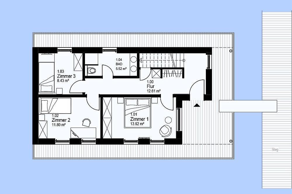 Auf einer Fläche von ca. 150 qm bietet unser Wasserhaus außergewöhnlichen Urlaubskomfort für bis zu 6 Personen. Im Erdgeschoss befinden sich die 3 Schlafzimmer und ein Badezimmer mit Dusche. Im Obergeschoss ist der großzügige Wohn- und Essbereich mit offener Küche untergebracht.