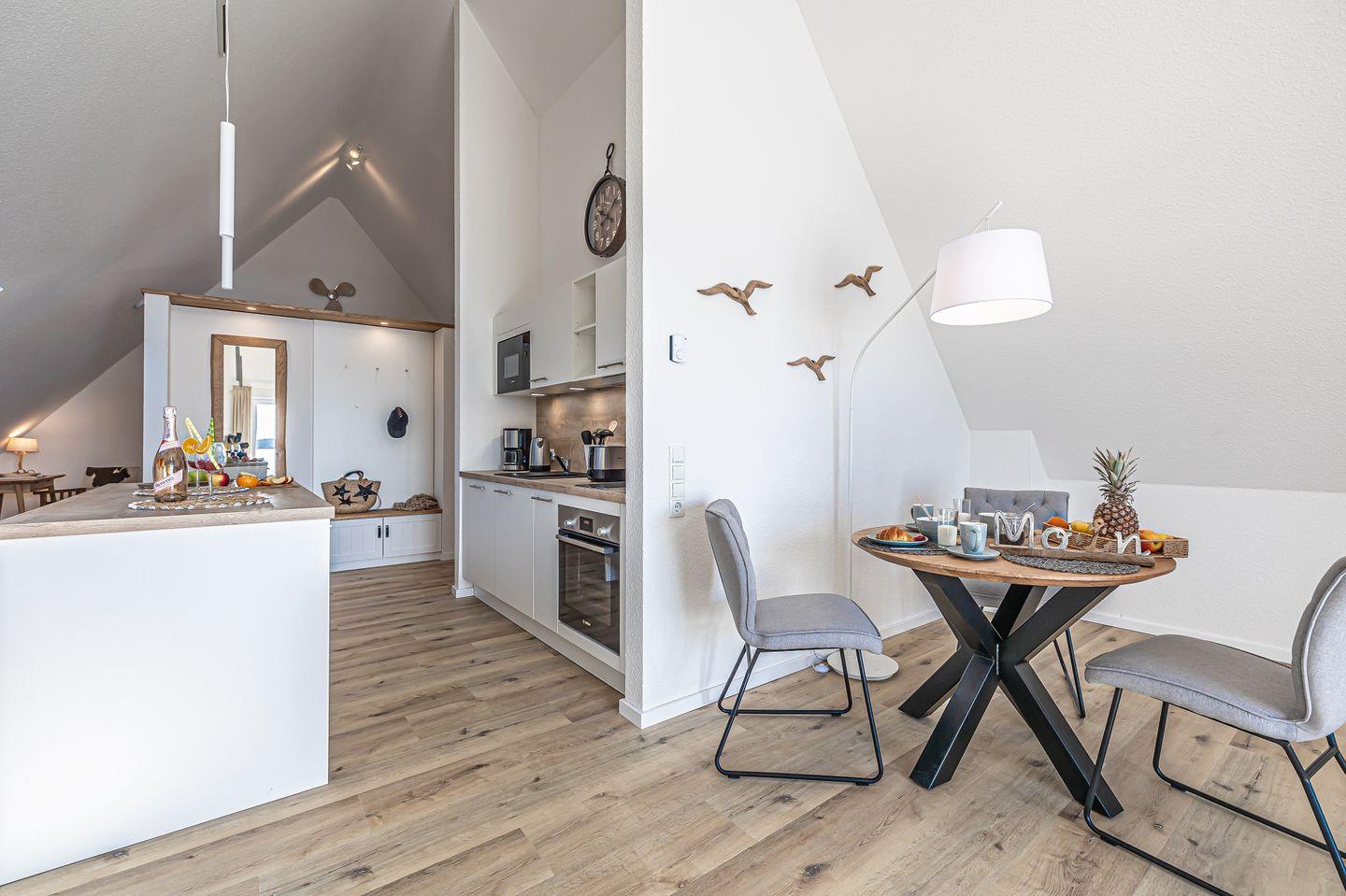 Die vollausgestattete Küche lässt keine Wünsche offen und im Wohnzimmer kannst Du Deine Urlaubstage auf dem Sofa vor dem Smart-TV ausklingen lassen.