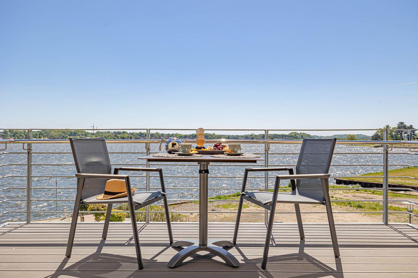 Moderne Ferienwohnung mit Balkon und direktem Blick auf die Schlei in Schleswig.