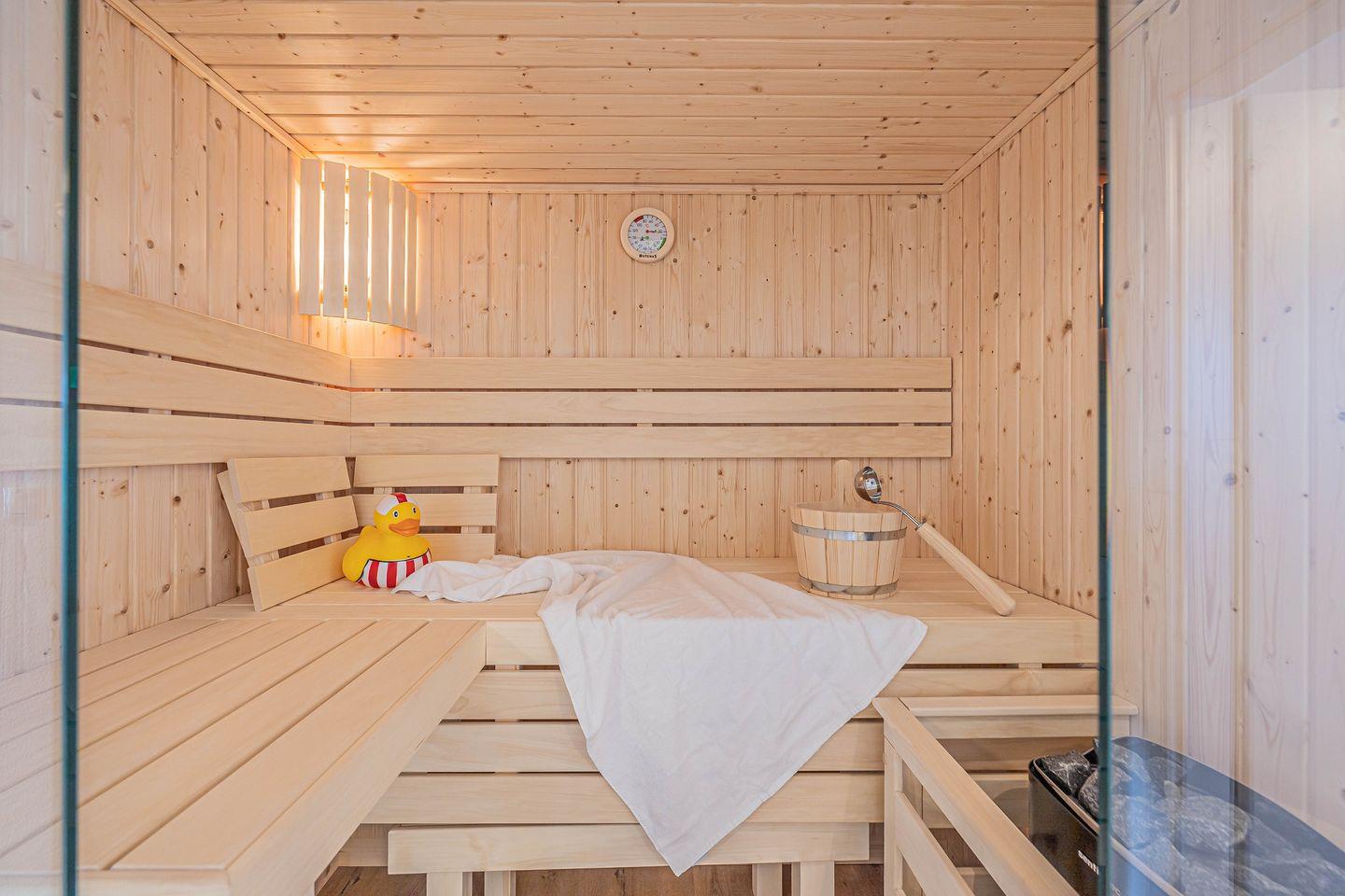 Und das absolute Highlight: eine finnische Sauna! Hier kannst Du Dich nach langen Strandspaziergängen aufwärmen und entspannen.