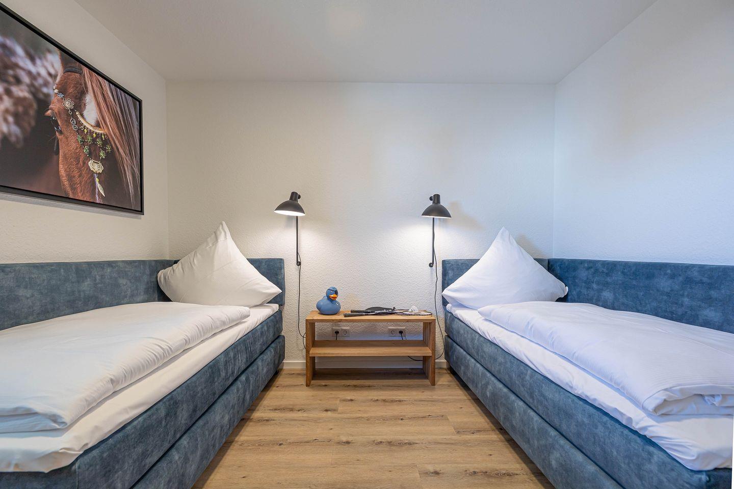 Das dritte Schlafzimmer verfügt über zwei Einzelbetten (je 90x200cm) und ebenfalls Verdunklungsmöglichkeiten.