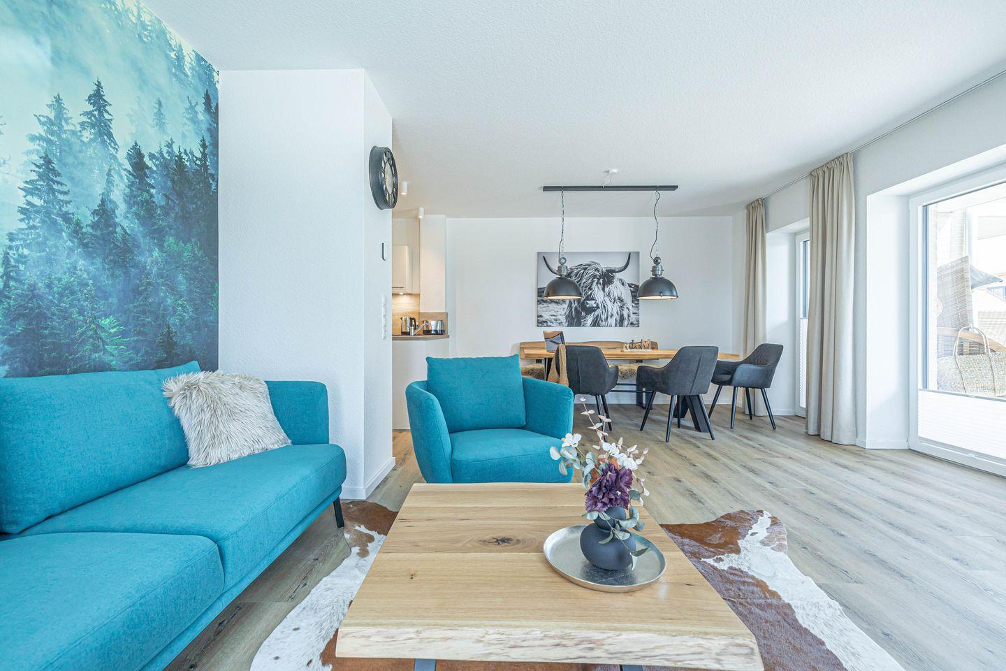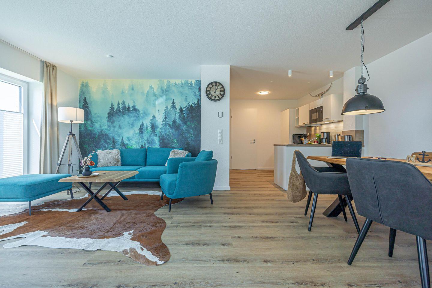 Die vollausgestattete Küche lässt keine Wünsche offen und im Wohnzimmer kannst Du Deine Urlaubstage auf dem Sofa vor dem Smart-TV ausklingen lassen.