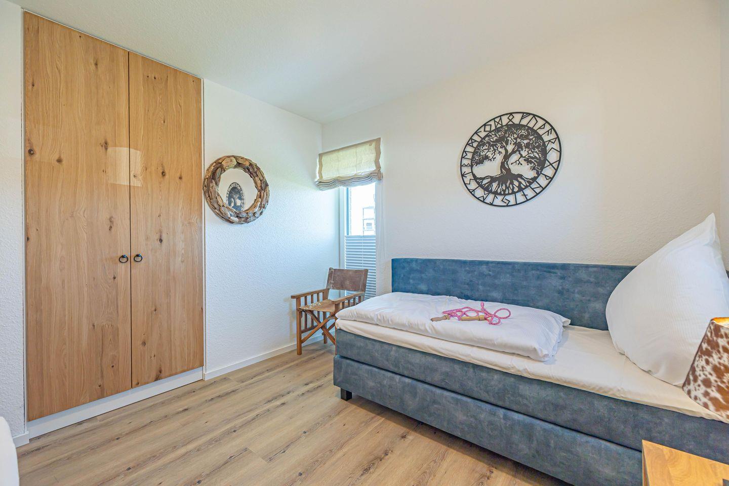 Das andere Schlafzimmer verfügt über zwei Einzelbetten (je 90x200cm) und Verdunklungsmöglichkeiten.
