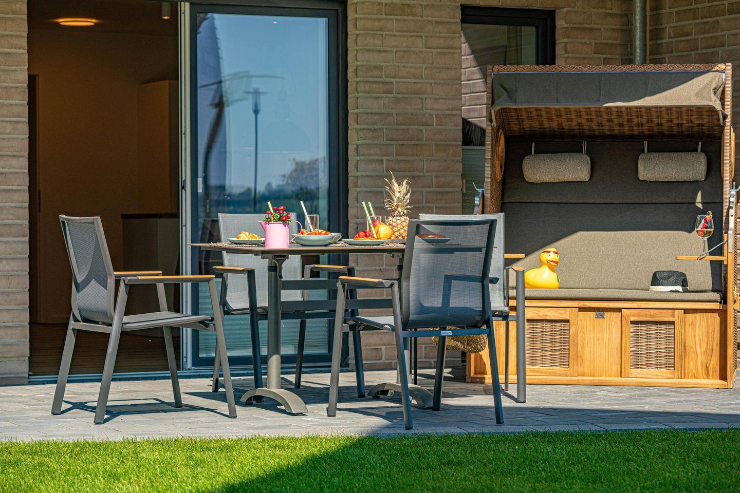 Auf der Terrasse kannst Du Dich entspannen und an lauen Abenden im Strandkorb Deine Urlaubstage ausklingen lassen und dank des Elektrogrills kannst Du Grillabende mit der ganzen Familie veranstalten.