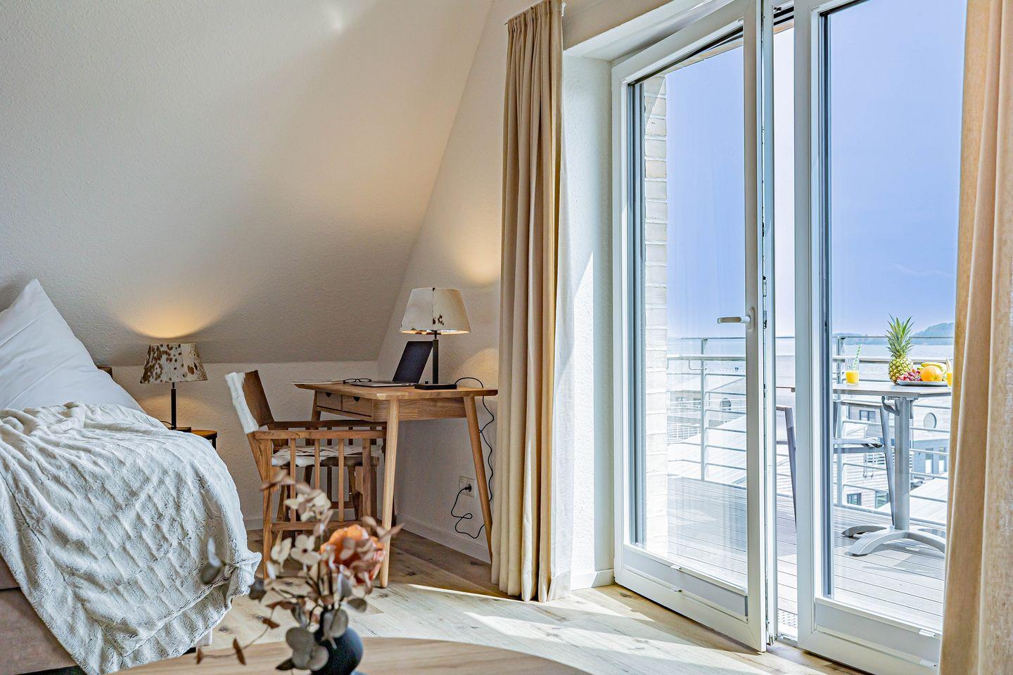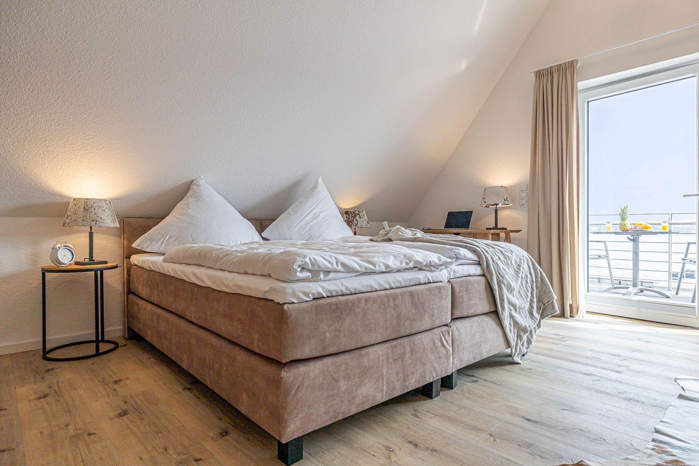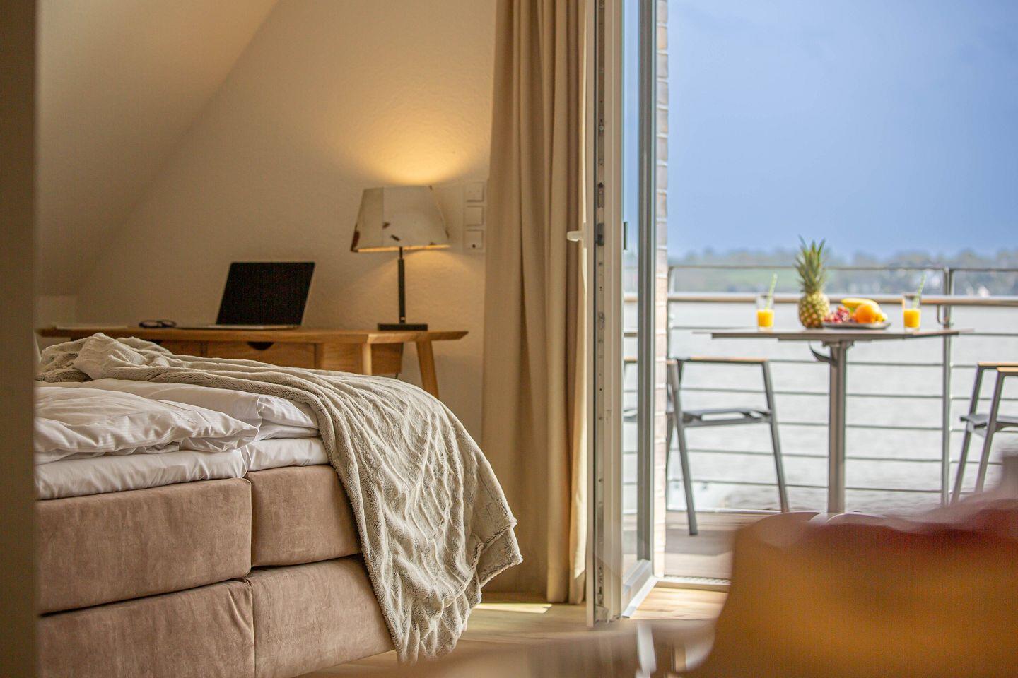 Modernes Studio-Apartment mit Balkon und Seeblick am Pionierhafen in Schleswig.